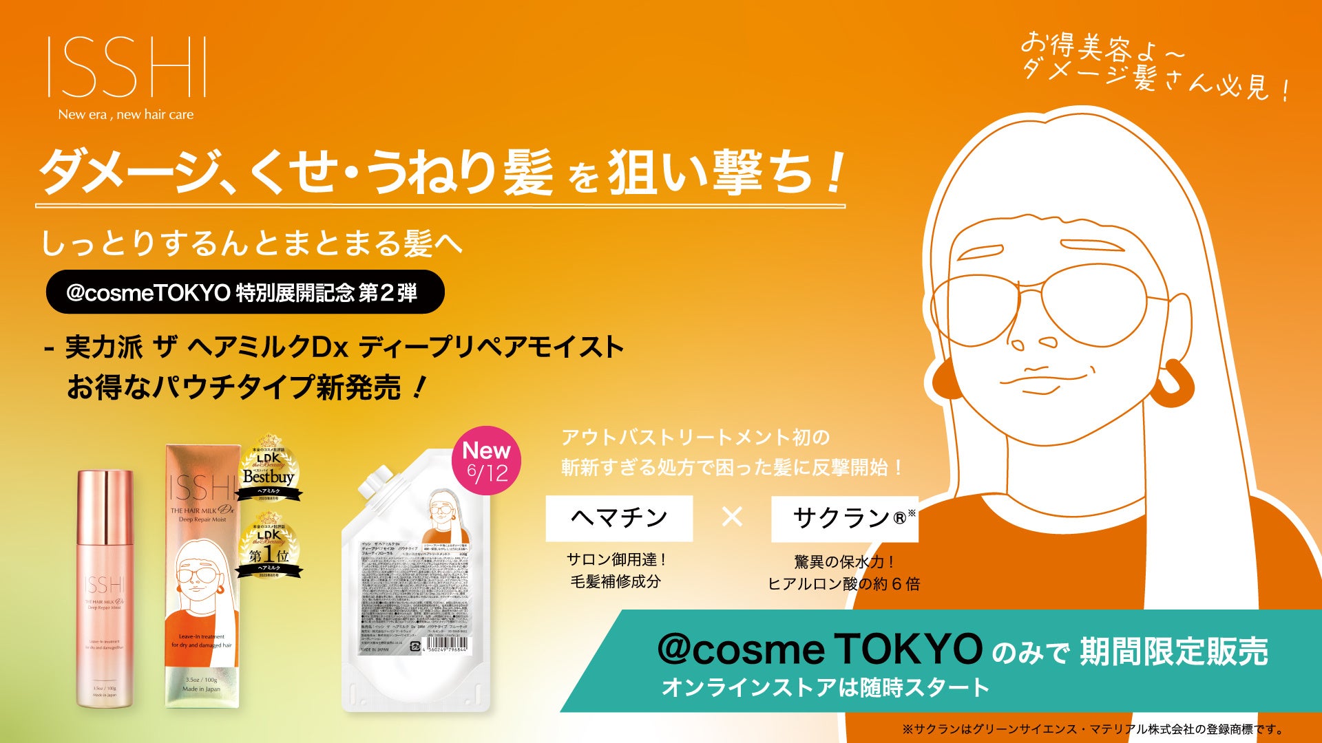 ISSHI(イッシ)の@cosme TOKYO特別展開記念第二弾!LDK the Beauty Bestbuy&第1位※の『ザ ヘアミルクDxディープリペアモイスト』パウチタイプを限定販売