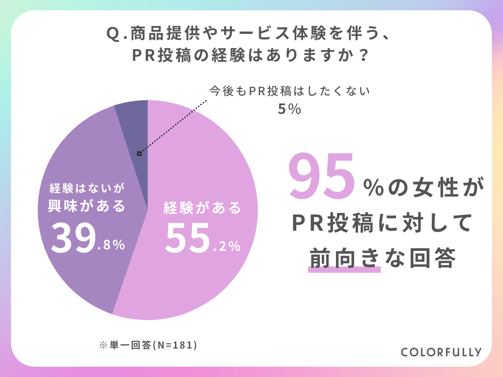 - 約55%がPR投稿の経験あり、未経験者も約40%が興味あり