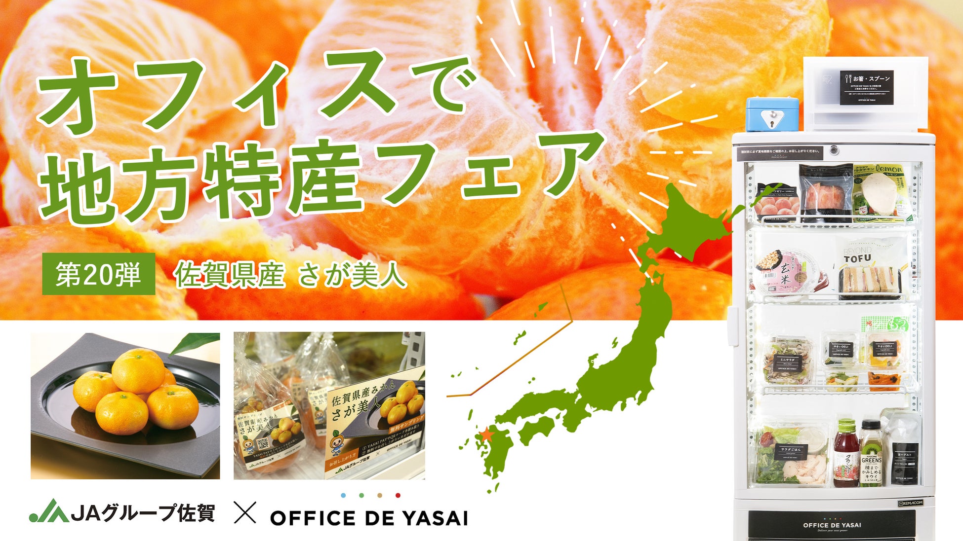 【JAグループ佐賀×OFFICE DE YASAI】オフィスで地方特産フェア 第20弾!佐賀県産温州みかん「さが美人」をオフィスで丸ごと1,000個無料配布