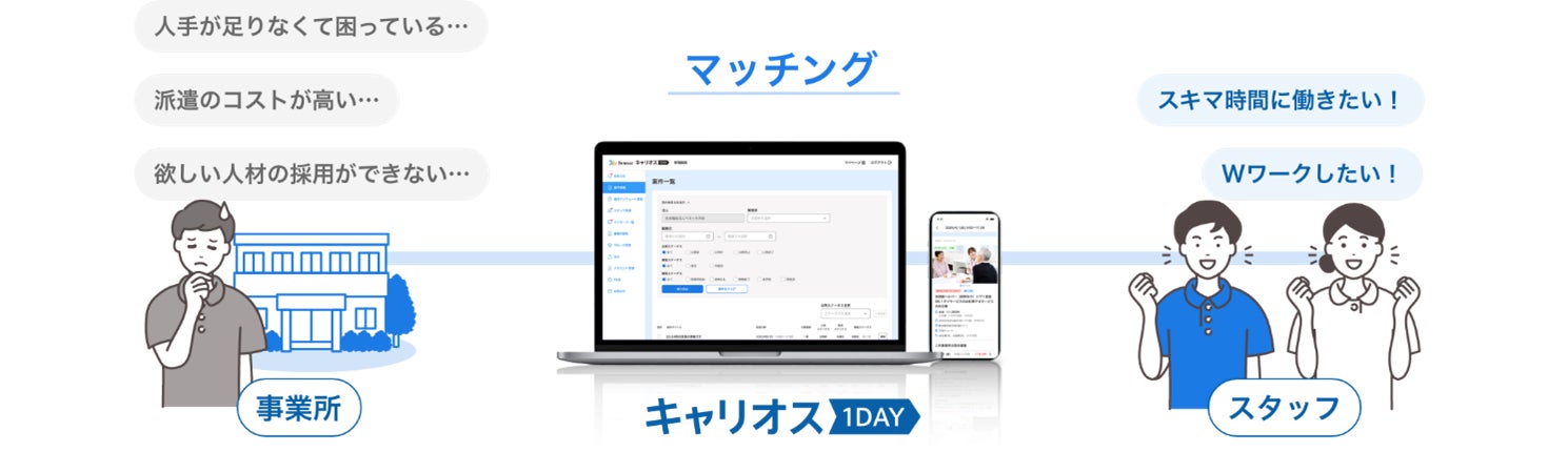介護職・看護職の有資格者向け単発マッチングサービス「キャリオス1DAY」を4月20日よりサービス開始 多様な働き方のニーズに対応し、介護人材不足軽減を実現