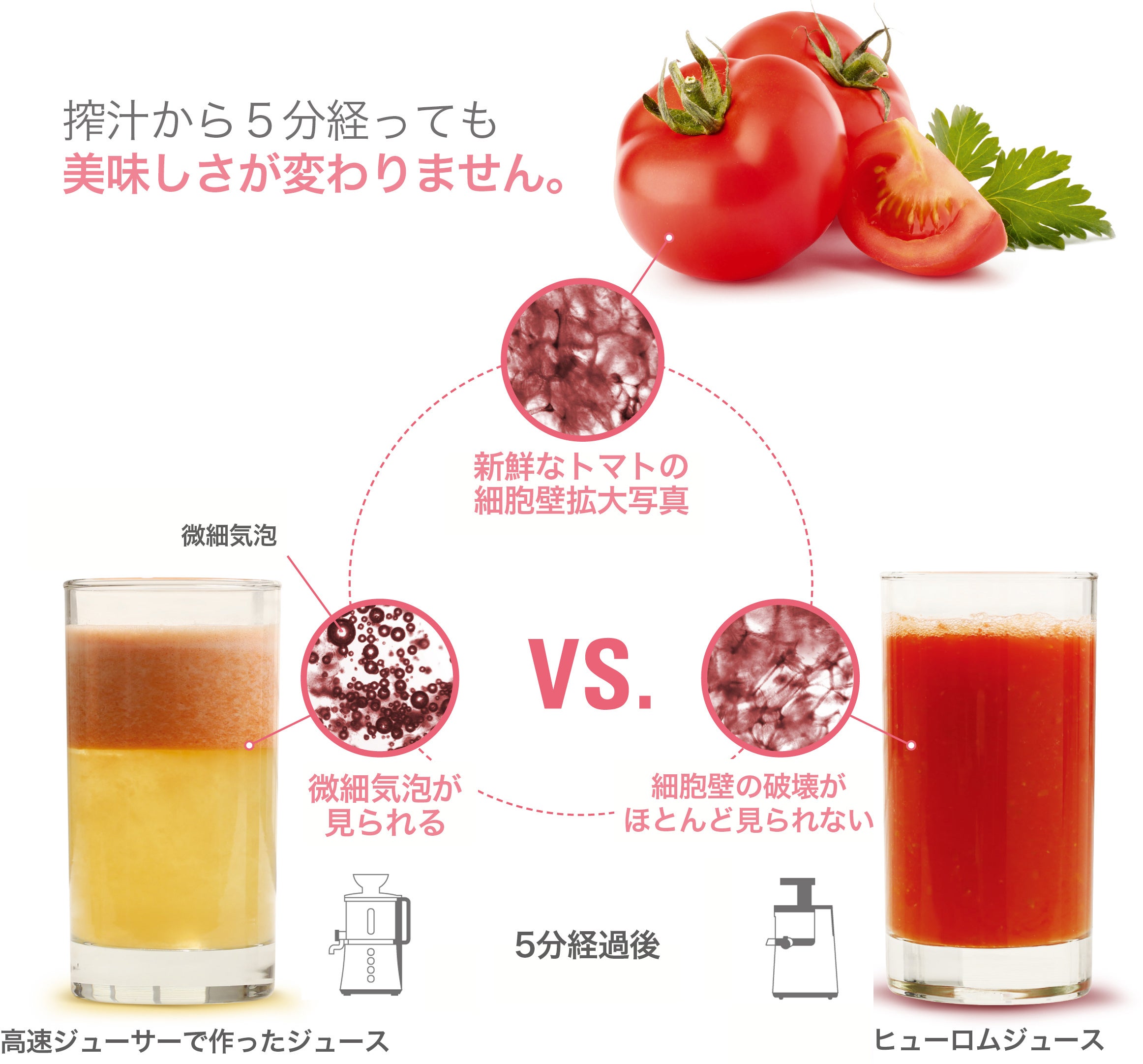 ヒューロムの低温・低速搾汁でつくる無添加ジュースとは