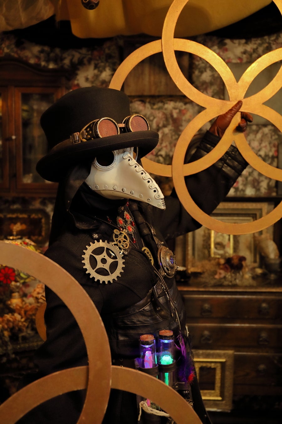 ファンタジー・スチームパンクの意匠をあしらった黒装束に身を包む、正体不明のパフォーマー。2019年より活動を開始し、彫像や人形を模す大道芸“スタチュー”と、目の錯覚を活かした不思議なジャグリング “エイトリング” を組み合わせたパフォーマンスの動画はSNS上で話題に。見た目からはギャップの生じるチャーミングな所作にも定評がある。