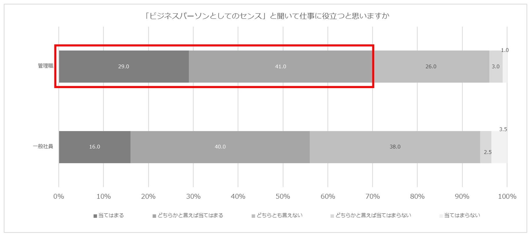 - 管理職の7割が「ビジネスパーソンとしてのセンス」は仕事に役立つと思っている。