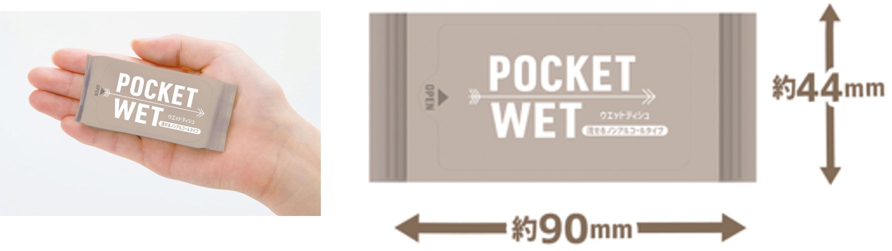 持ち運びに便利な、手のひらサイズのウエットティシュ。大人気『POCKET WET』シリーズより、流せるノンアルコールタイプが新登場!
