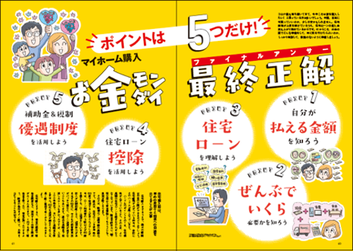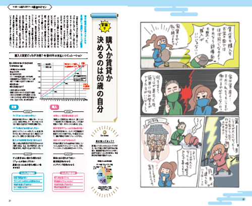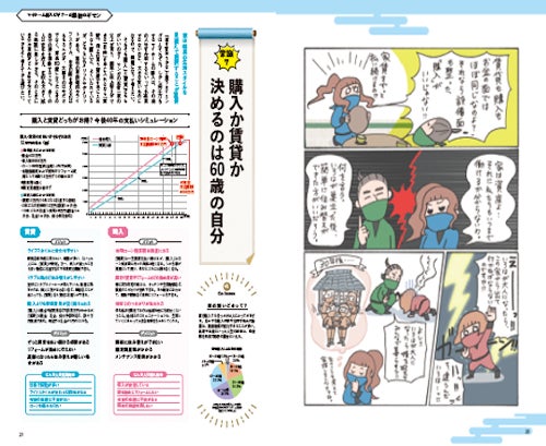 人生最大の買い物になるマイホーム購入。だけどわからないことだらけ・・。だれもがぶつかるさまざまな疑問に挑むのは、なんといまを生きる忍者一家。「購入か賃貸か」「建築会社とはどう出会うのか」など、忍者屋敷を建て直すことになった一家が、マイホーム購入ビギナーが直面する数々の難題に立ち向かいます。コミック上で描かれる疑問点を、専門家が解決に向けて詳しく解説していく本特集で、もう家を買うのは怖くない!