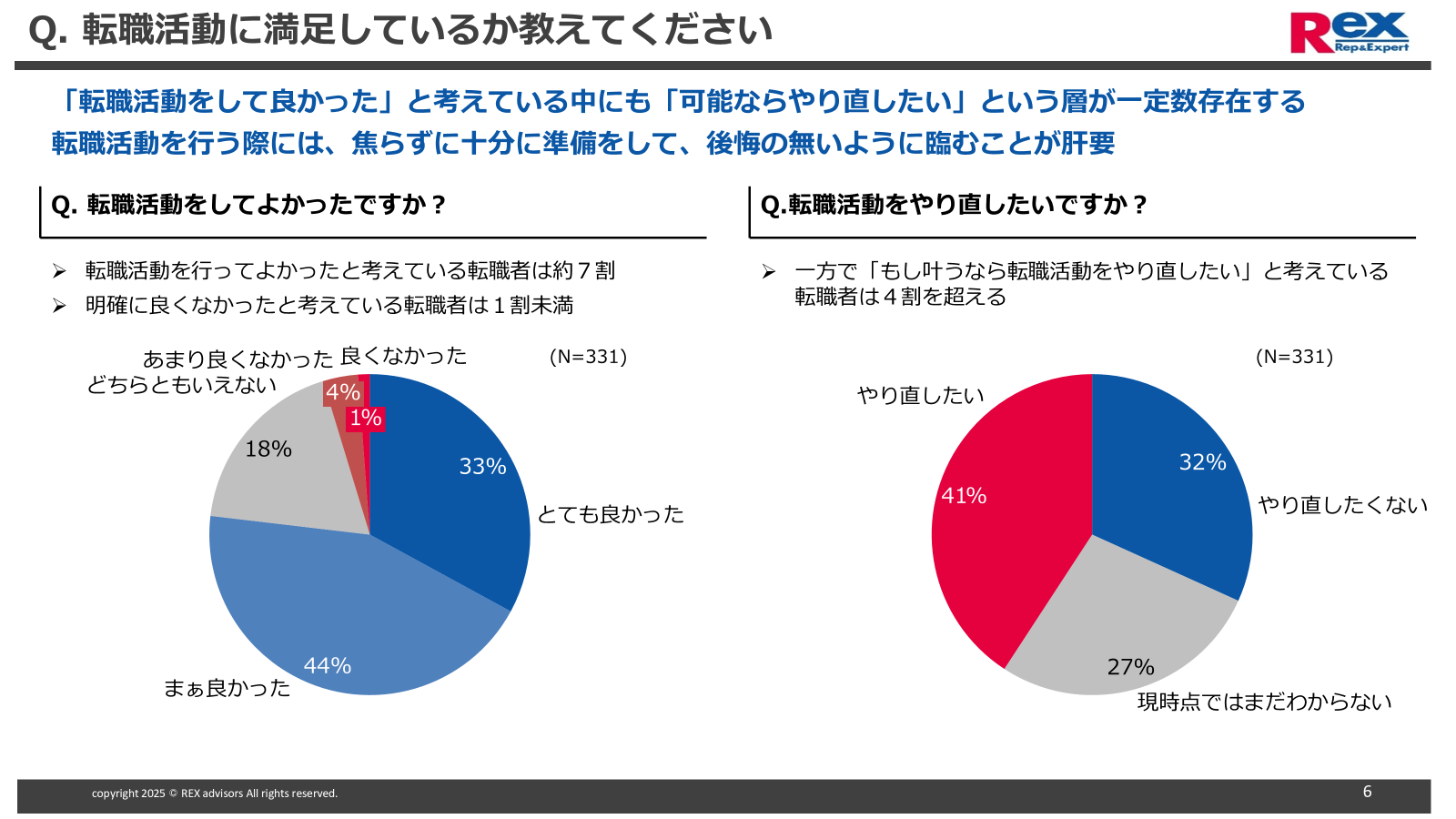 可能なら転職活動をやり直したいと考えている転職者は4割以上。「転職活動をして良かった」と答えた転職者の中にも「やり直したい」層は一定数存在する