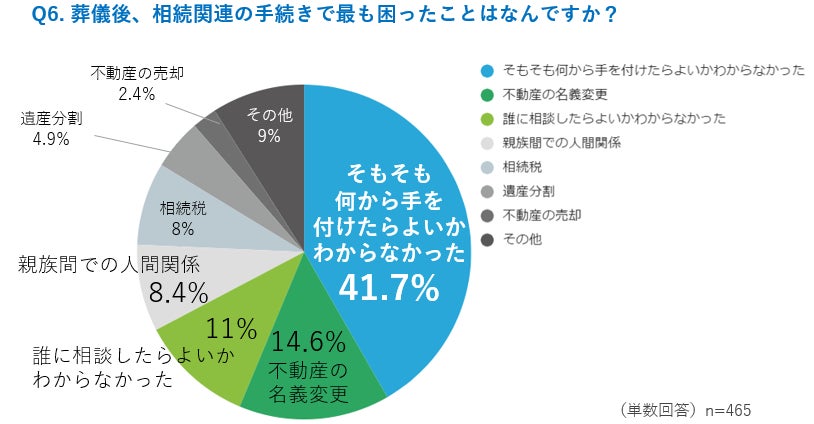 - 葬儀後、相続手続きで最も困ったことは「何から手をつけたらよいかわからなかった」