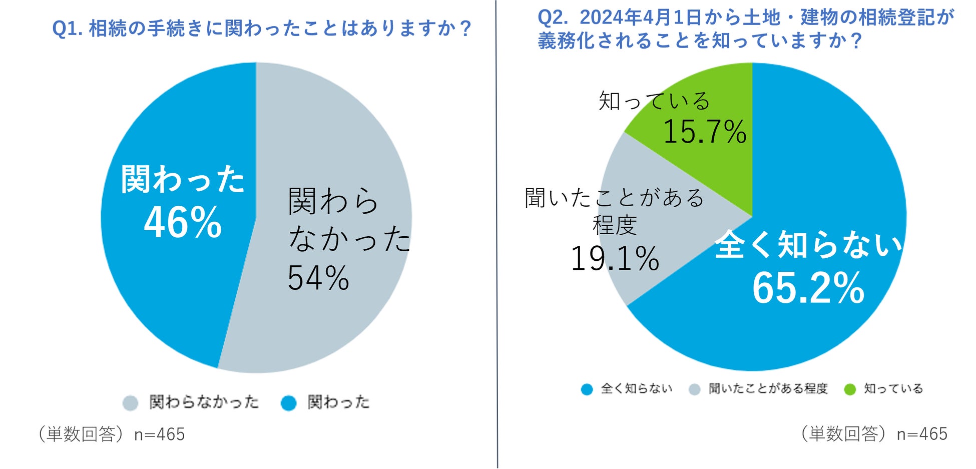 過去5年に家長(親など)を亡くされた40代以上の465人中、約半数の46%が相続手続きに関わったと回答しました。このように誰もが経験する可能性のある相続手続きですが、2024年4月1日に施行される民法と不動産登記法などの法改正により、相続登記が義務化される見込みとなっております。