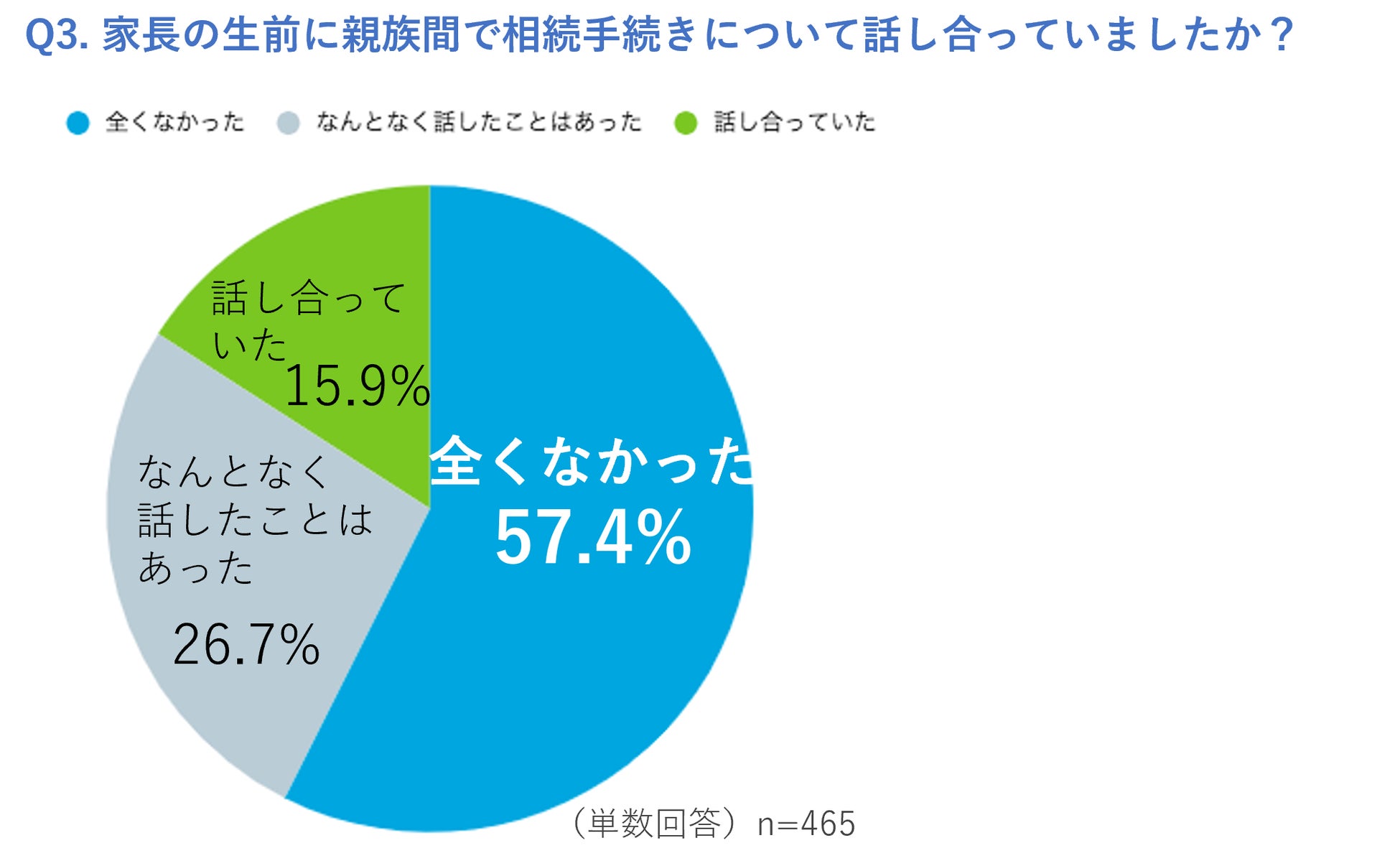 次に多かったのは「なんとなく話したことはあった」26.7%、「話し合っていた」と回答した人はわずか15.9%と、生前に相続手続きについてきちんと話し合っていた家庭は、2割にも満たない結果となりました。