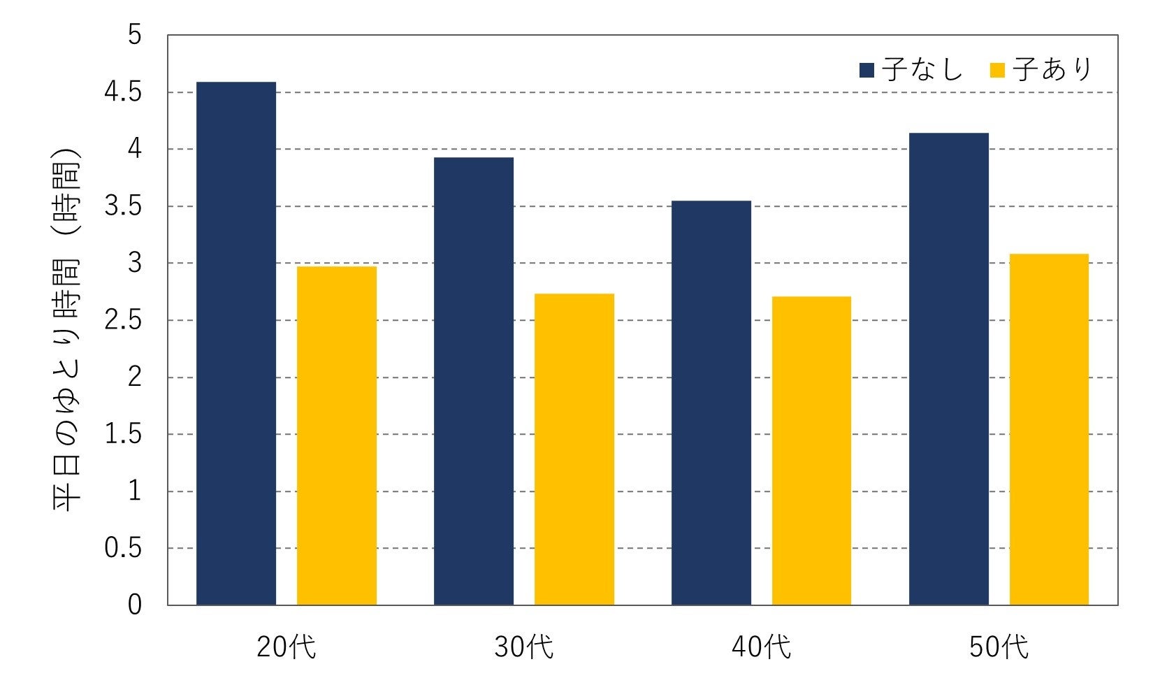 図1. 各年代別(子なし・あり)の平日の「ゆとり時間」