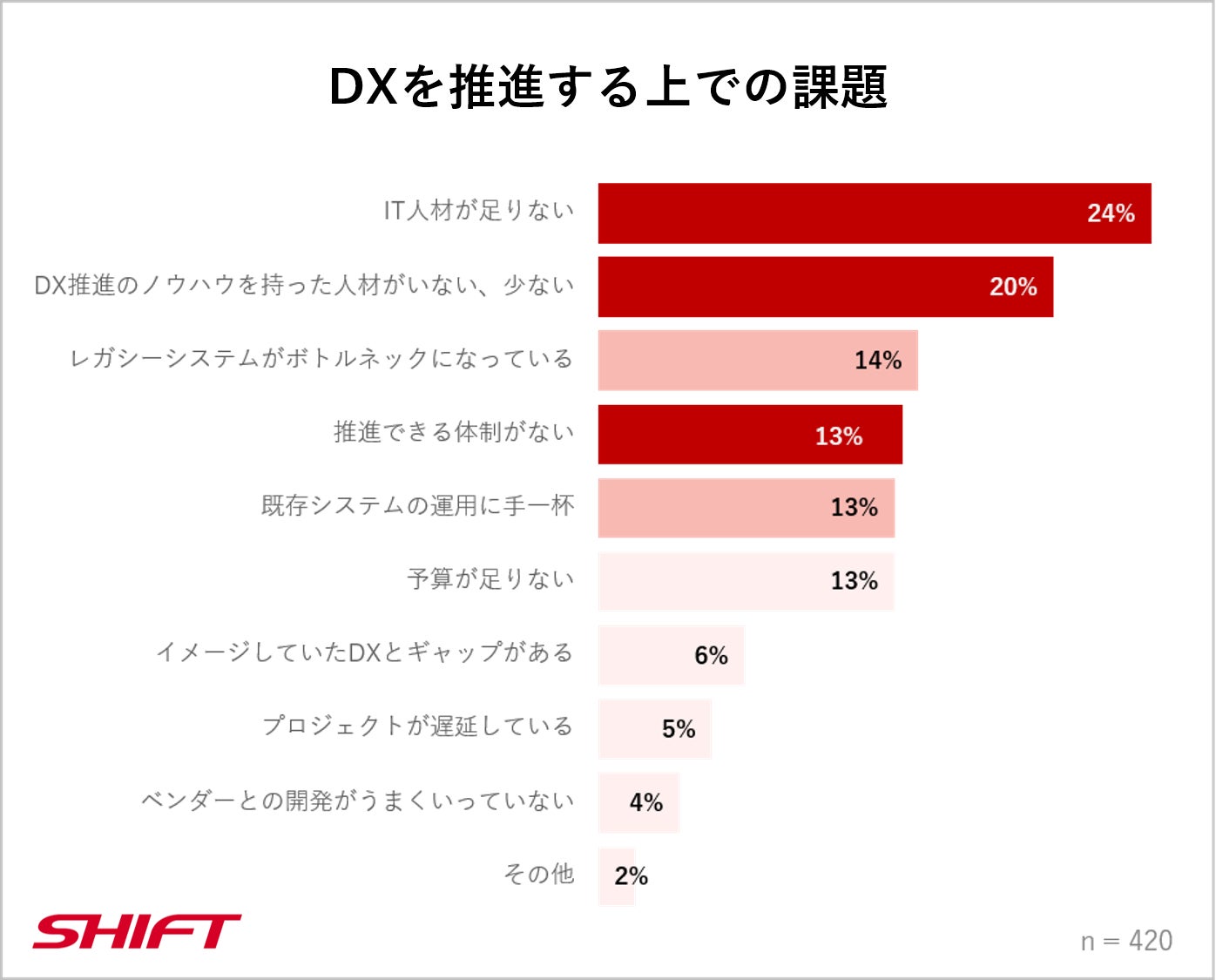 - DXを推進する上での課題:既存システムの保守性に加え、人材不足が課題になっている