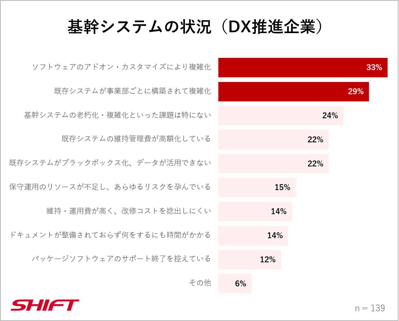 - 基幹システムの状況(DX推進企業):基幹システムにおいて複雑化・サイロ化の課題を抱えている