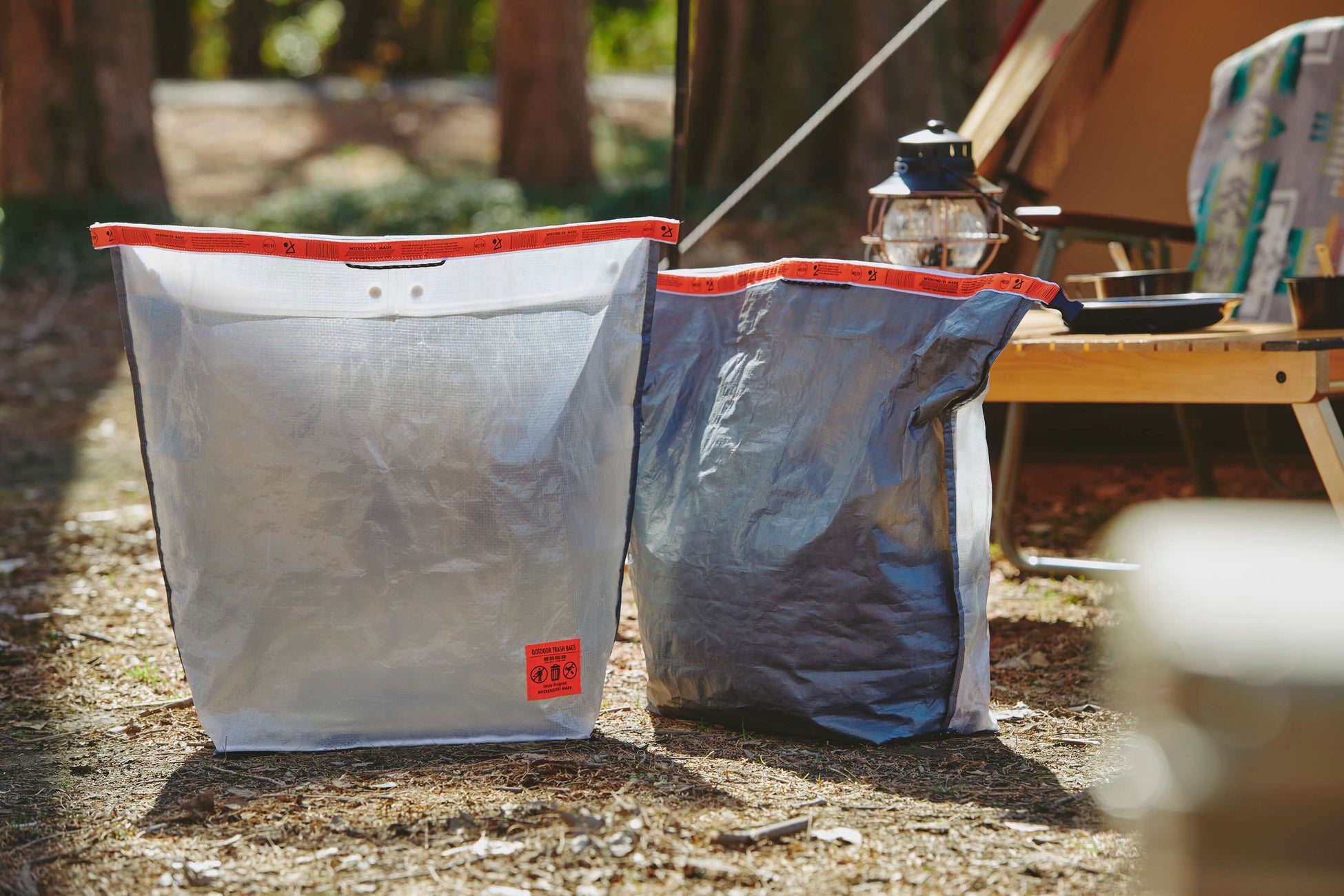デザインは、キャンパーから根強い人気を誇るブランド「WEEKEND(ER)」の代表作・PEパッキングシリーズをベースに、hinataが大胆アレンジ!世界一かっこいい、と自信を持って言える「アウトドアトラッシュバッグ」を開発しました。