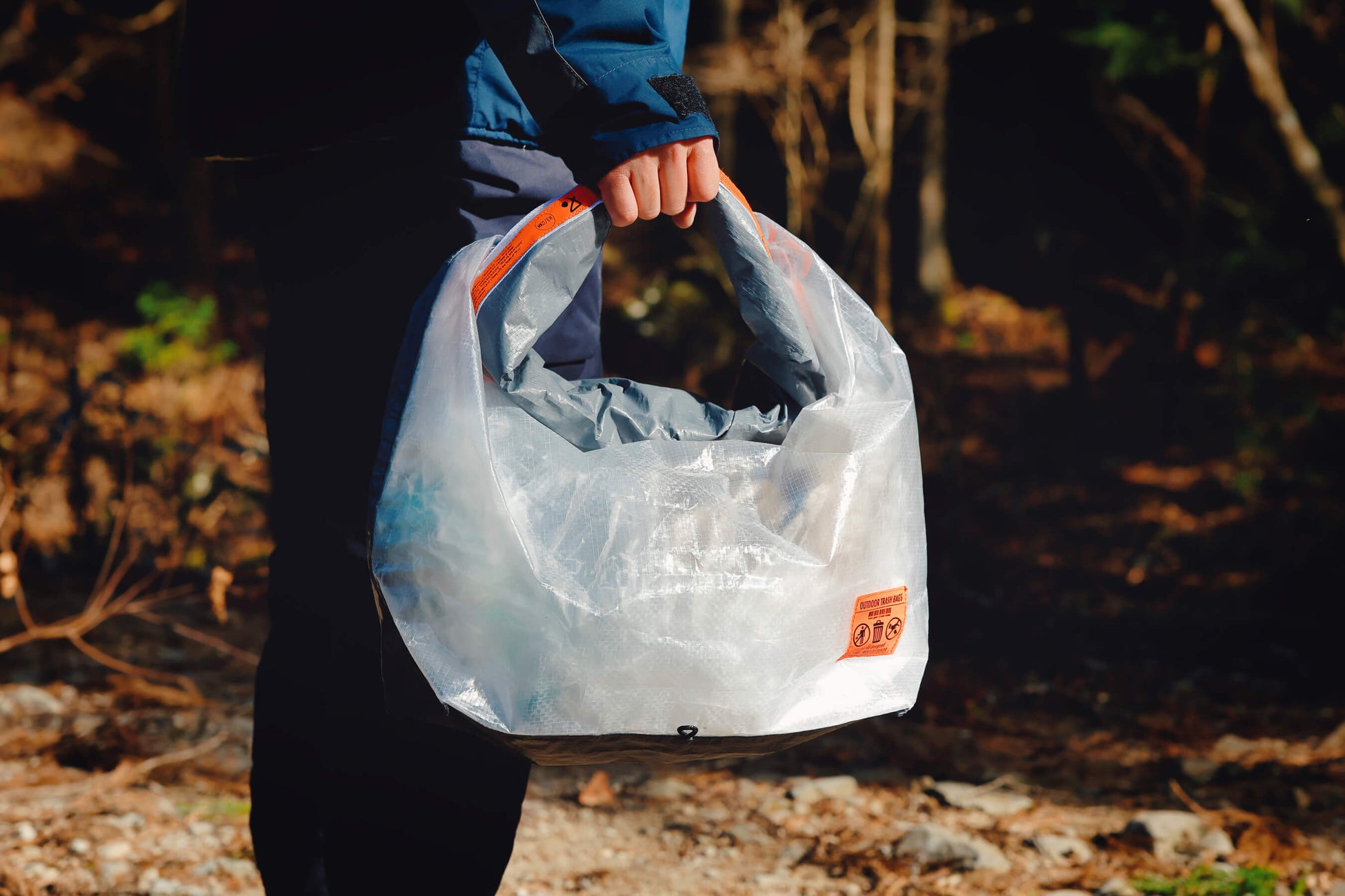 ゴミを持ち帰るときの「車中が臭くなっちゃう」なんていうストレスからも解放されるはずです。開口部に設けられた面ファスナー+ロールトップ式による高い密閉力で、嫌なニオイ漏れもしっかりガード。内容物の量に合わせてトップ部分をくるくると巻いて、最後に開口部の両脇に装備されているバックル同士を接続すれば撤収完了。ハンドル状になるので持ち運びも楽々です。