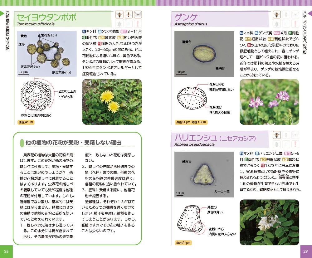 花粉症の原因になる花粉からハチミツが採れる花の花粉まで、身のまわりの植物の花粉がわかる【花粉ハンドブック】発売!