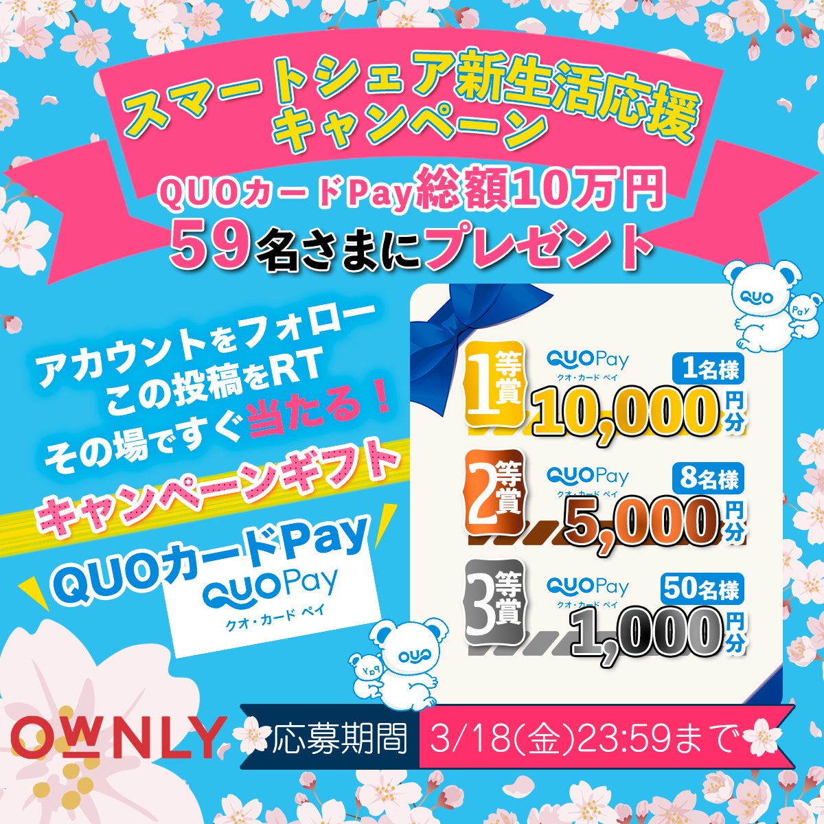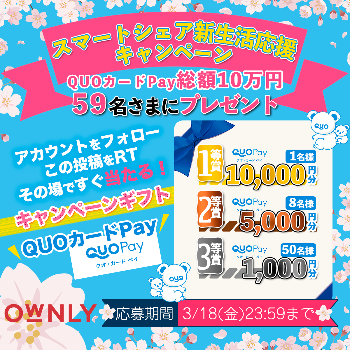 OWNLYを活用して、賞品総額10万円のTwitterフォロー&RT「#スマートシェア新生活応援キャンペーン」開催中