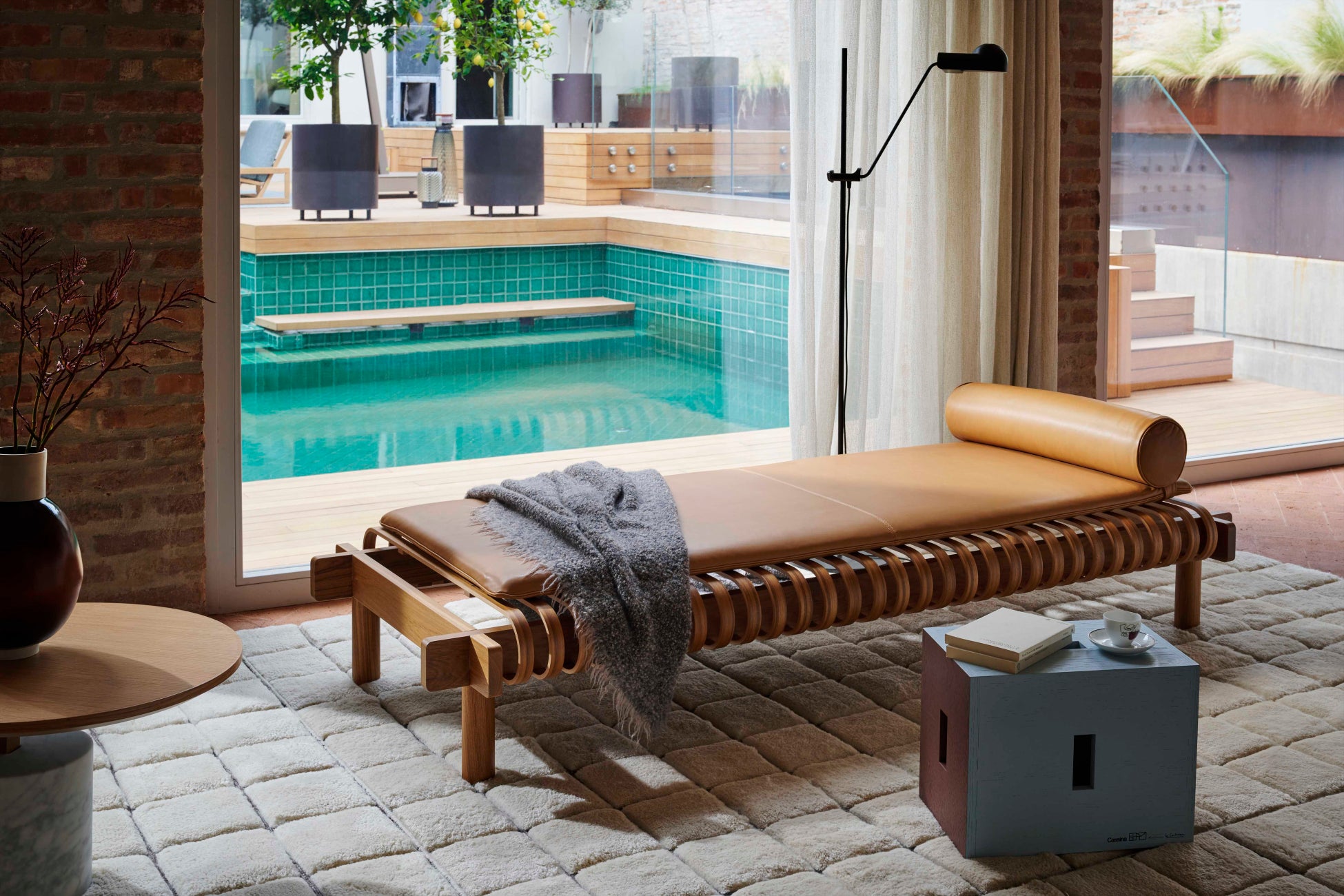 カッシーナは、彼女の娘であり唯一の後継者であるペルネット・ペリアン=バルサックとの密接な共同作業により、このデイベッドを限定版として開発しました。カッシーナの木工工場でチーク材を用いて製作されたこのデイベッドは、技術革新と工業デザイン、そして職人の手作業による技術が融合しています。エレガントなパッド入りのレザーマットレスとヘッドレストが、構造体と組み合わさりさらに快適な寝心地を生み出します。