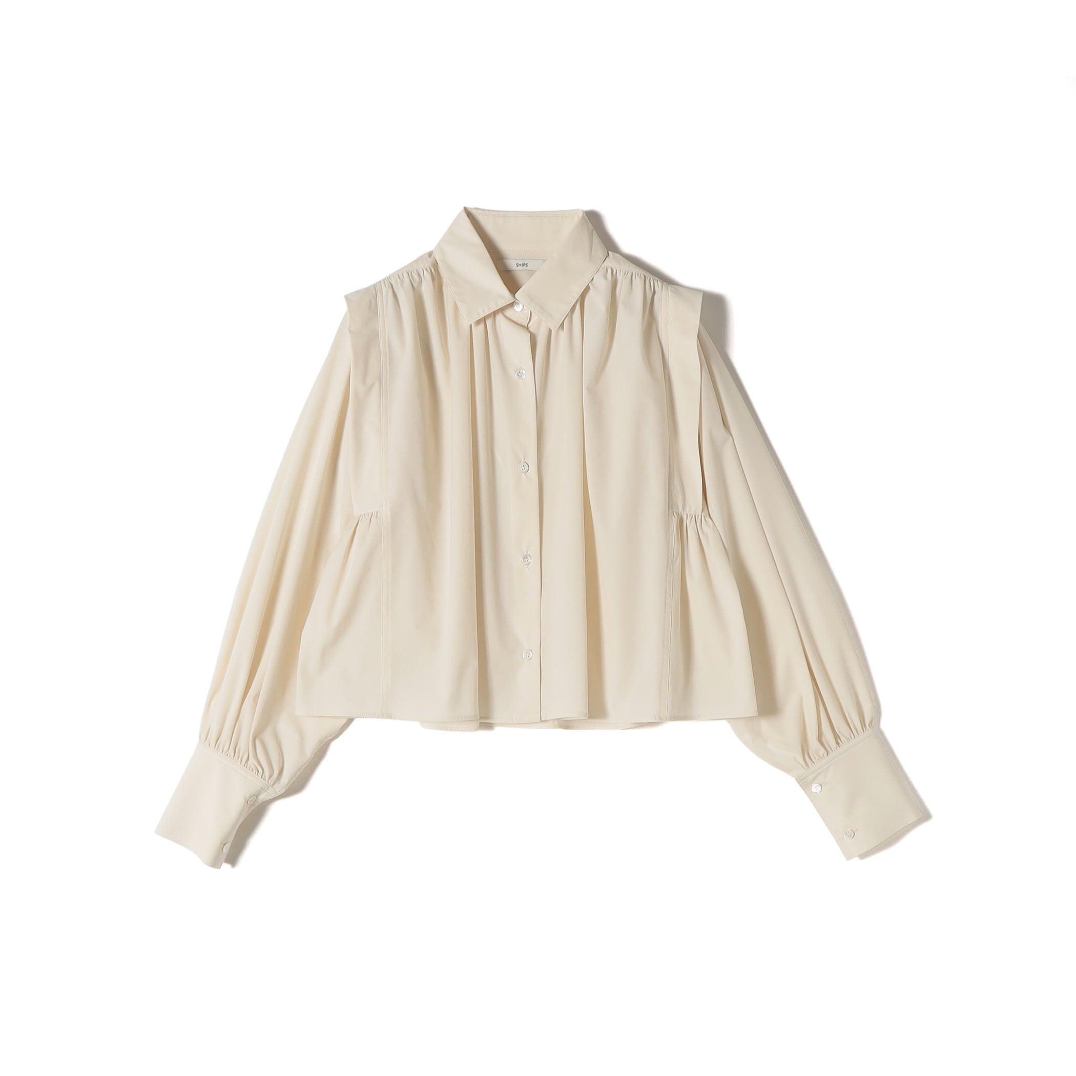 パンツインでもアウトでもバランスよく決まる絶妙なレングスのクロップドブラウス。やや長めに設定した袖が、さりげないリッチ感を演出します。バックスタイルにはギャザーを贅沢に施し、後ろ姿まで華やかな印象に。さらに、撥水加工やしわになりづらいイージーケア、速乾性をはじめとする多彩な機能を備えたポリエステル素材「TEXBRIT®」を使用。軽い雨をはじき、お手入れもしやすく、デイリーに頼れるアイテムです。