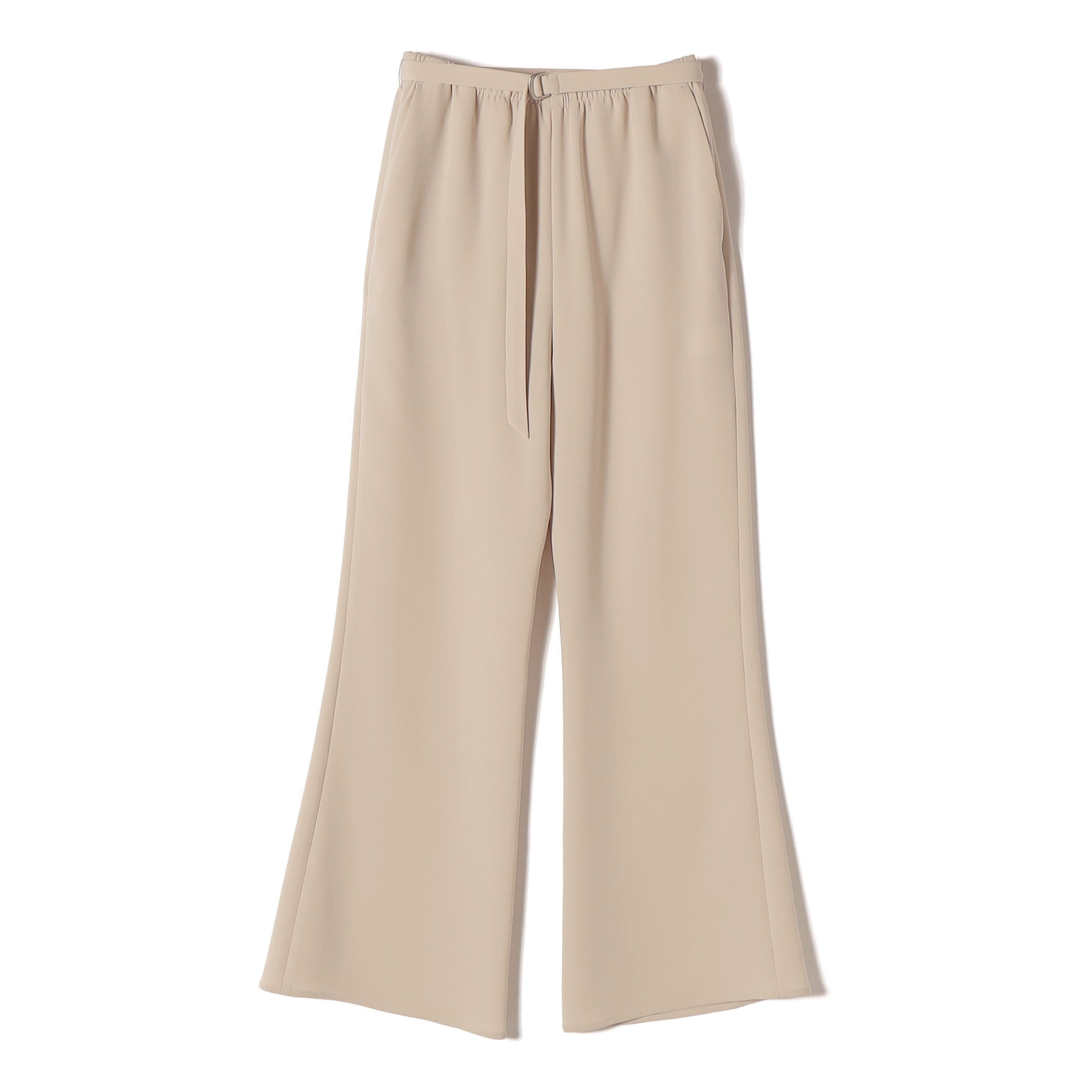 ミニマルなデザインで、きれいめにもカジュアルにも自然になじむ万能パンツ。ふくらみのあるダブルクロス素材が立体的で美しいシルエットを描き、程よく広がるフレアラインが上品な大人の印象を演出します。ストレッチ性を備えた快適な穿き心地に加え、リップやスマートフォンなどをさっと収納できる深めのポケット付き。日常のシーンに寄り添う、実用性も兼ね備えました。