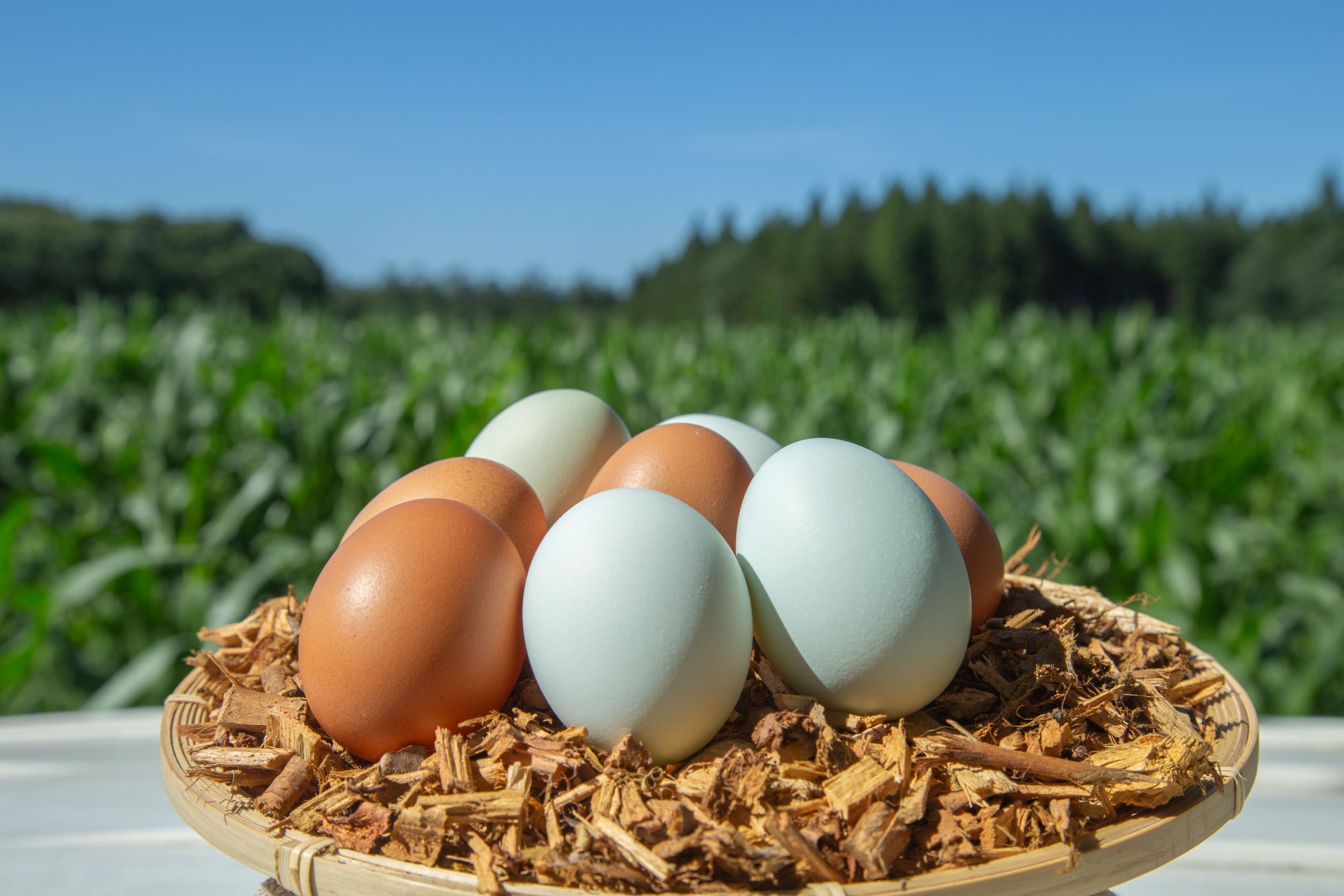 無農薬・無化学肥料の野菜やハーブ、小麦、米、果実などが栽培され、さらに養鶏場では平飼い有精卵「青玉」と「赤玉」を採卵しており、鶏たちの主食のデントコーンも農場内で無農薬・無化学肥料で栽培しています。