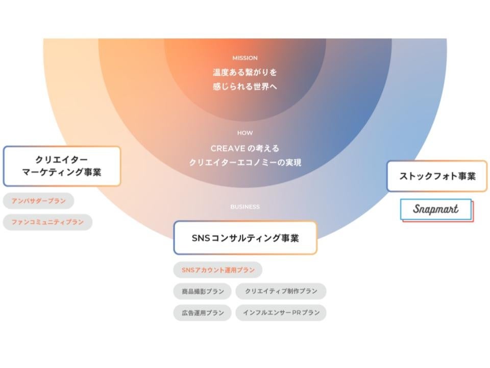SNSコンサルティング事業 クリエイターマーケティング事業 ストックフォト事業 |