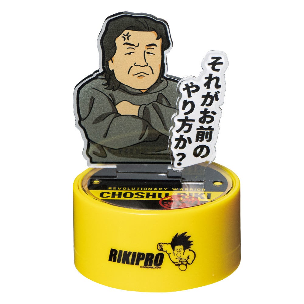 台座の部分をプッシュすると音声が流れます。台座は長州力さんのアクリルをセットして飾ることもできます。