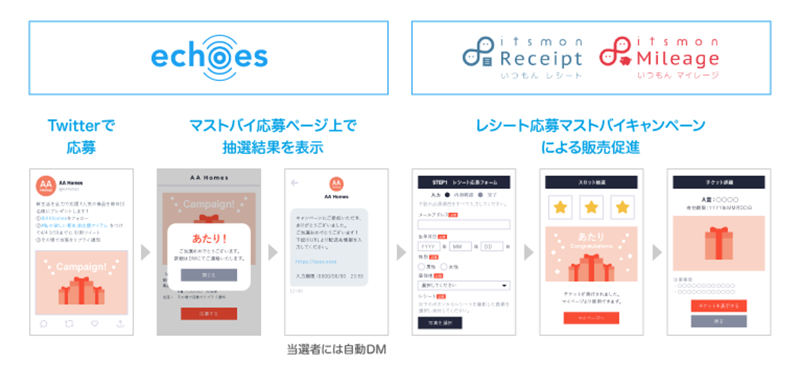 レシート応募キャンペーンシステム「itsmonレシート」「itsmonマイレージ」とSNSマーケティング支援SaaS「echoes」が連携