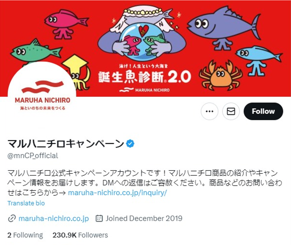 大手食品メーカーのマルハニチロでは、売上向上を目的に集客手段を模索する中、約23万フォロワー(2023年3月時点)を有する「マルハニチロキャンペーン」公式Twitterアカウントを活用した購買転換施策を計画。インスタントウィンキャンペーン連動型のマストバイ施策を実施することで、大規模なTwitterキャンペーン参加者をマストバイ施策へ送客できることをメリットと捉え、2023年6月に開催される冷凍食品のキャンペーンにおいて、本サービスの活用を予定しています。