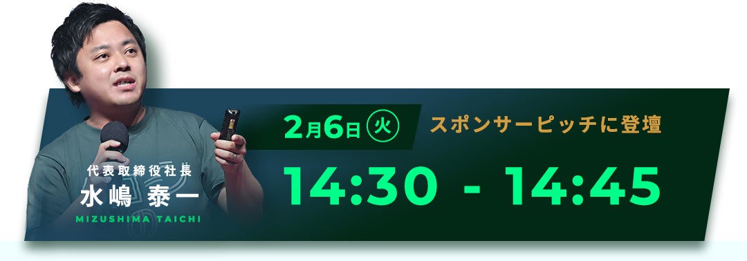 また、2月6日(火)14:30-14:45のスポンサーピッチにて弊社水嶋が登壇いたします。