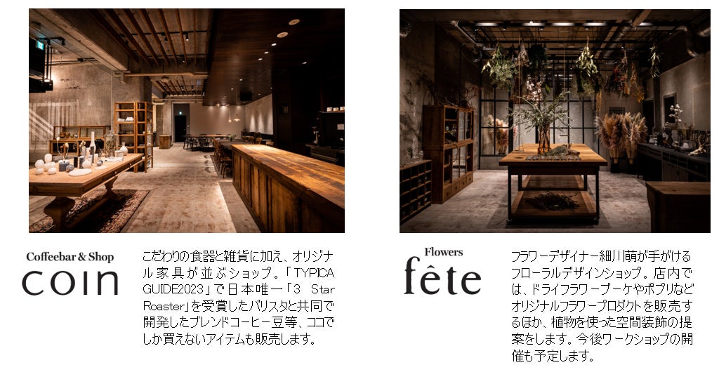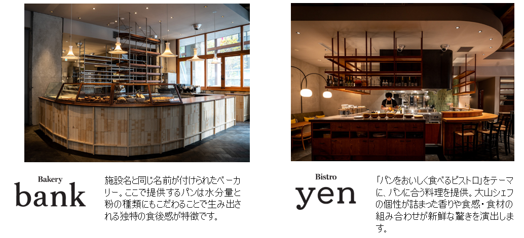 ベーカリー(bank)、ビストロ(yen)、ライフスタイルショップ&カフェ・バー(coin)、フラワーショップ(fête) の複合施設