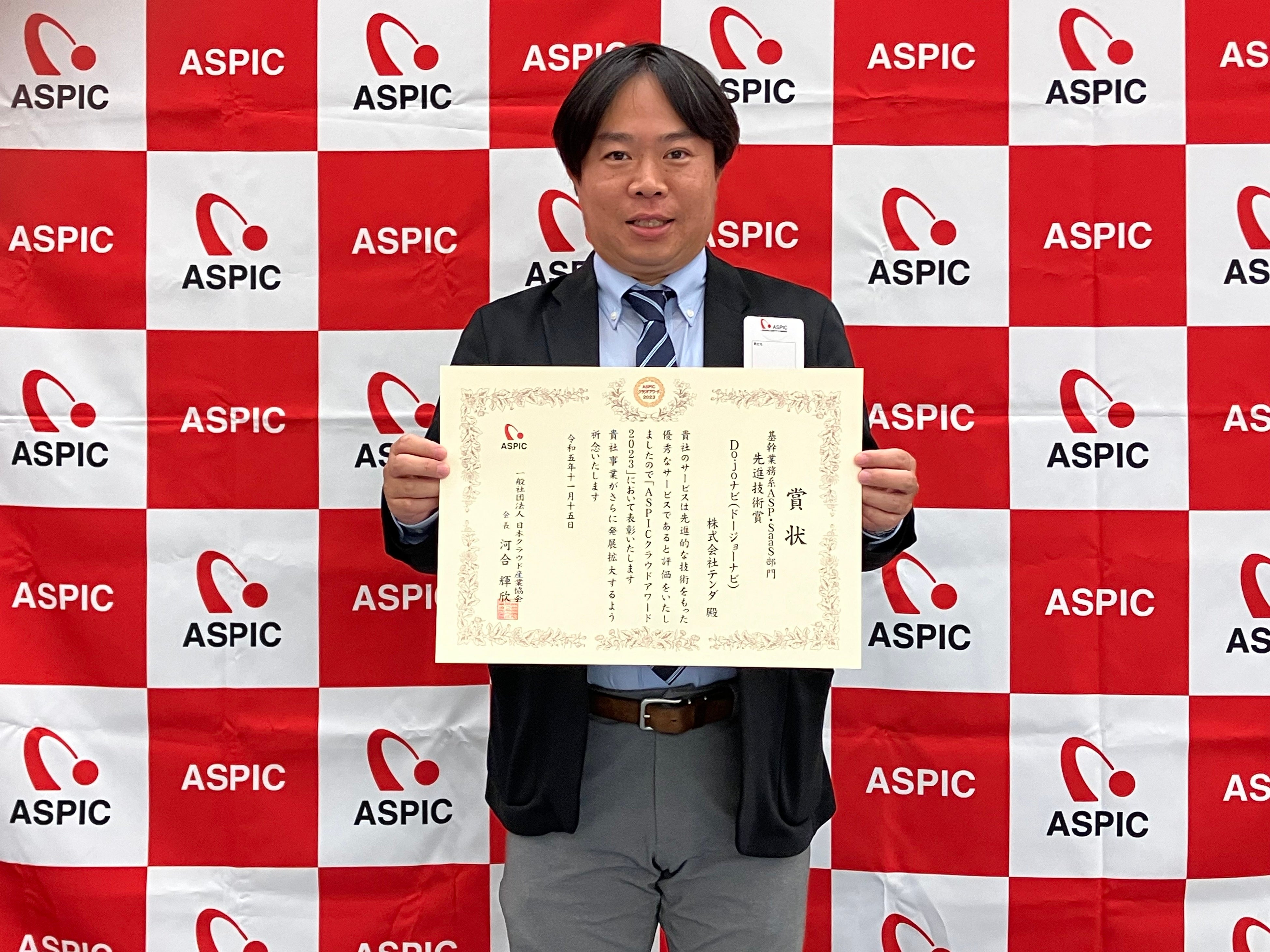 ※ASPIC河合輝欣会長(写真左)から表彰を受けるテンダ執行役員 i-Tech Centre長の富澤