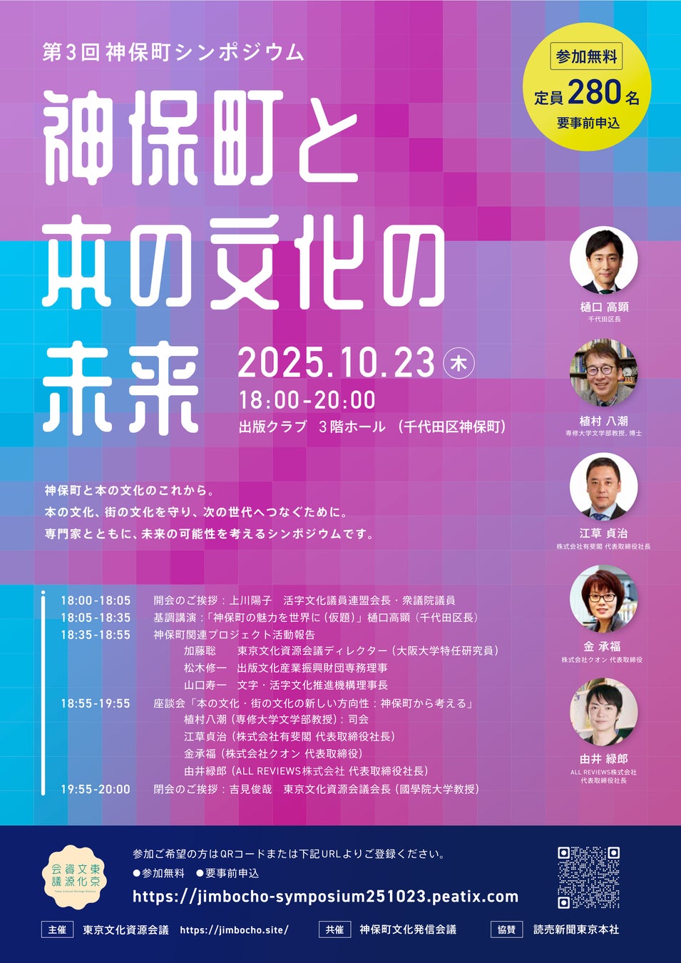 参加申込 :Peatixによる事前申込制 https://jimbocho-symposium251023.peatix.com