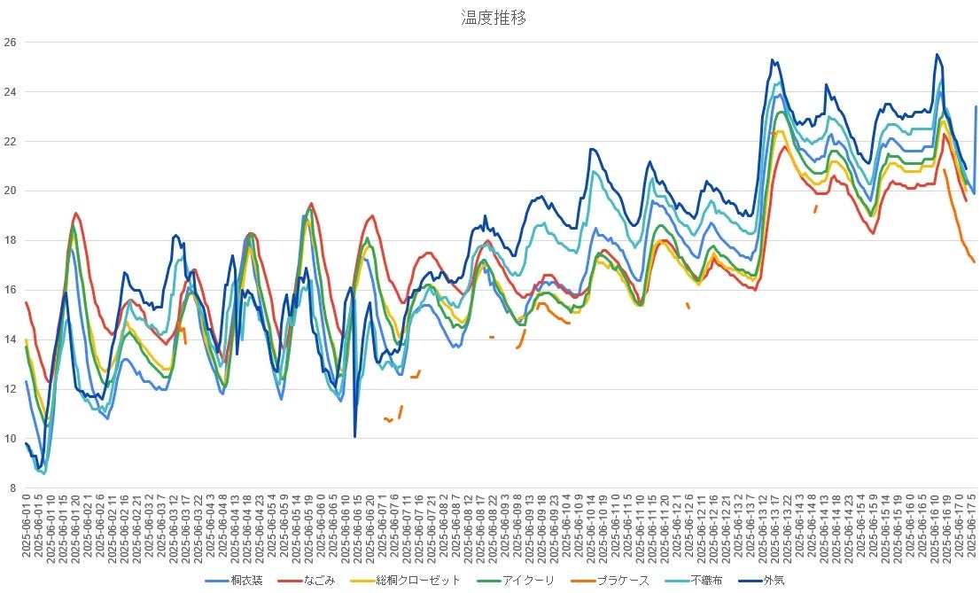 こちらもなごみチェストが温度の変動が少ない結果になりました。