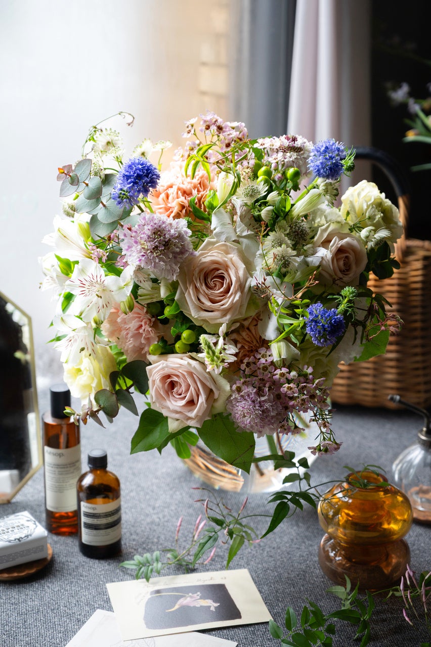 ※その時々のおすすめのお花を束ねるため、色合いや使用する花は全てお任せとなり、ご指定いただけません。