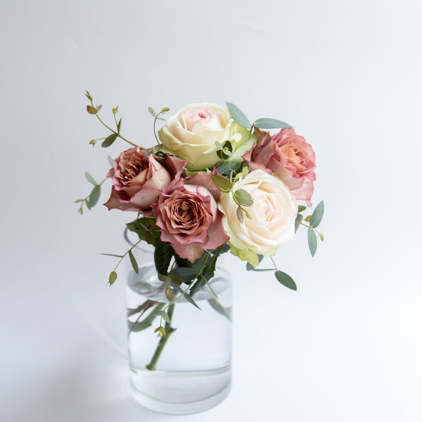 モダンな色合いと、ふんわりと咲き開く姿がほっと心を和ませてくれる、バラが主役のブーケ。信頼のおける農園で収穫された高品質なバラをミックスし、産地からフレッシュな状態でお届けします。