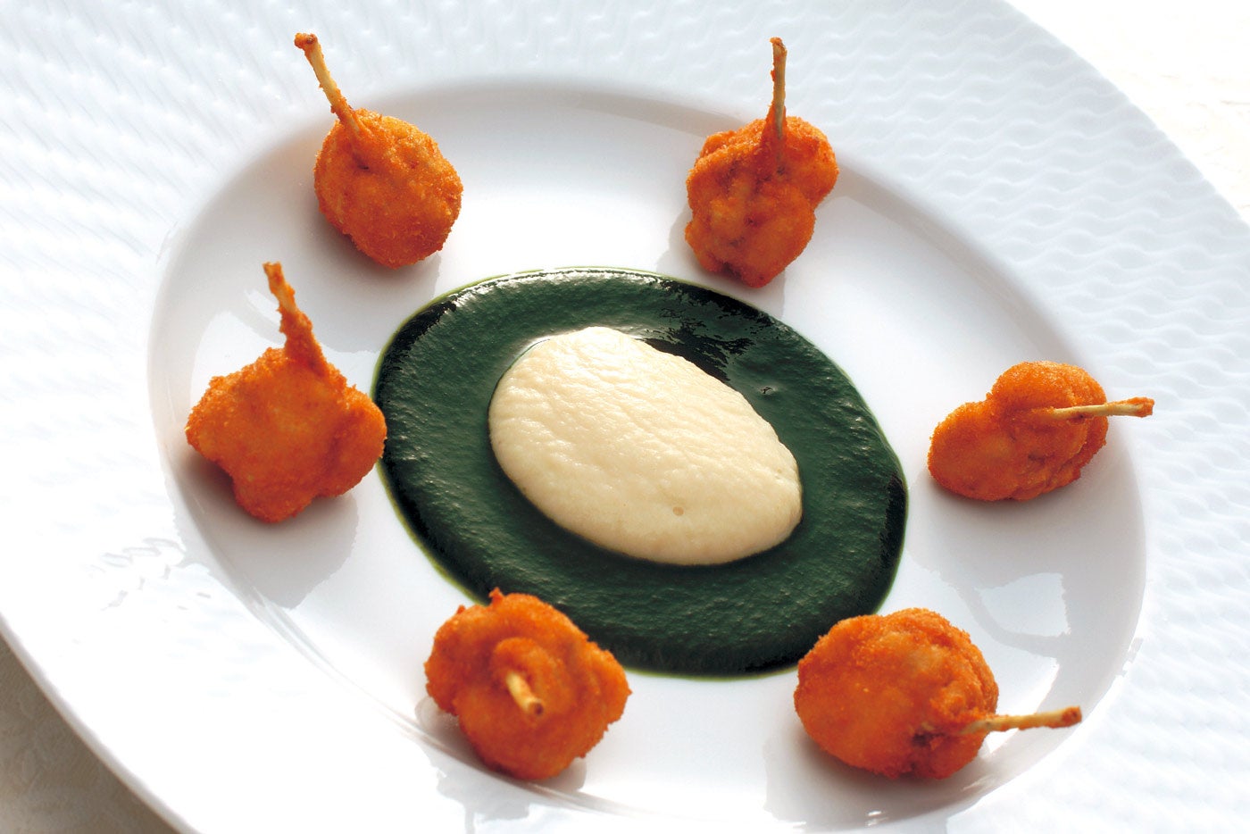 ベルナール・ロワゾー氏へのオマージュ料理であるグルヌイユにおいては、パセリとニンニク、2種のピュレのバランス、グルヌイユの焼き色、火入れにこだわって調理。パセリピュレの香りやみずみずしさ、ニンニクピュレの濃度、すべてのバランスが調和していたこと、グルヌイユの香ばしい焼き色や火入れ具合も完璧だったことが評価されました。