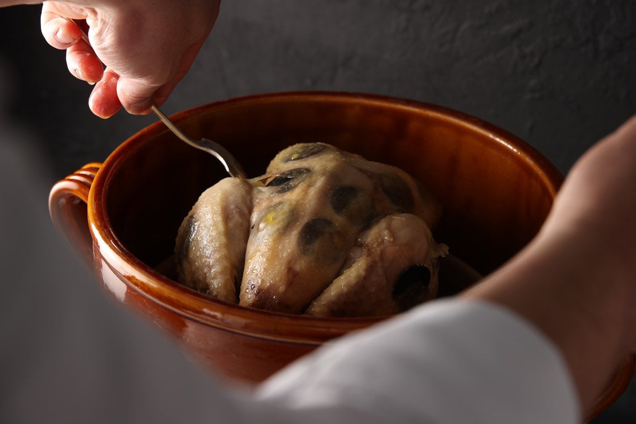 プーラルド・アラヴァプールにおいてこだわったのは、ジュー(焼き汁)の味、肥育鶏の火入れ加減、トリュフご飯に使う米の火入れ具合。完成した料理の香りが、全候補者の中でも群を抜いており、味わいや付け合わせのバランスも素晴らしいとの評価を受けました。