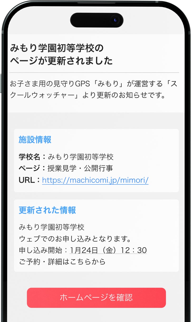 施設のホームページの構成によっては、変更を検知できない場合がございます。確実な情報の把握のため、定期的に各学校のホームページも併せてご確認いただくことを推奨いたします。