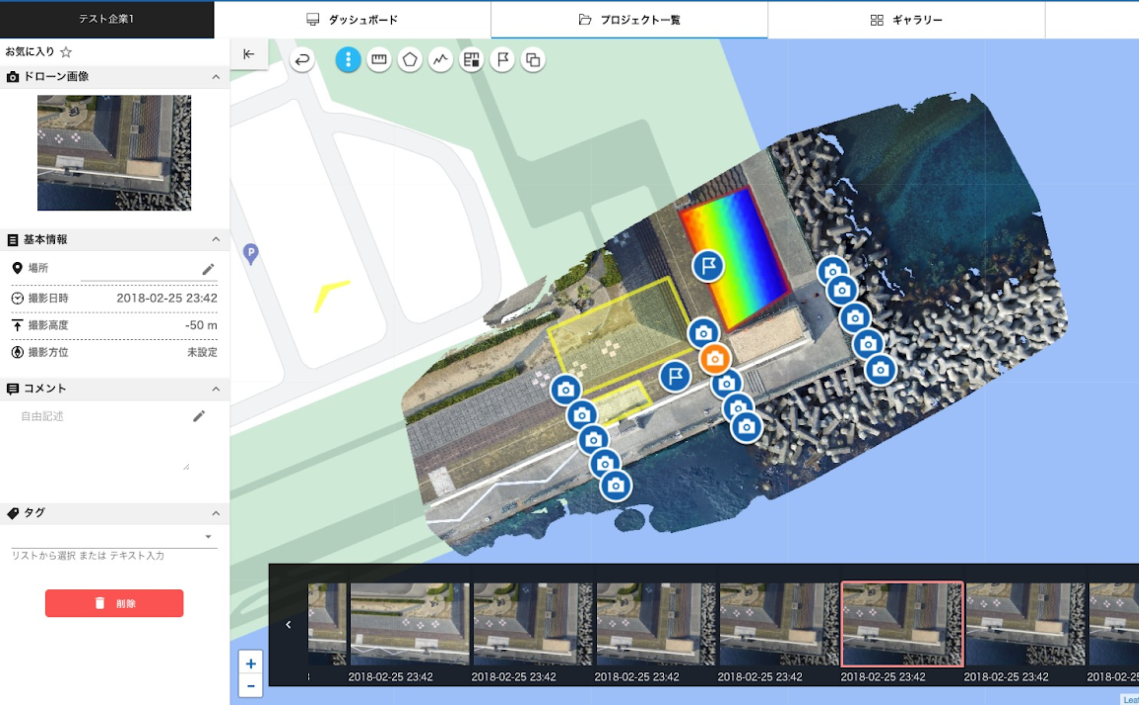 オルソ画像や、写真・動画の各データにタグを設定し、データの整理や検索が容易に行えます。
