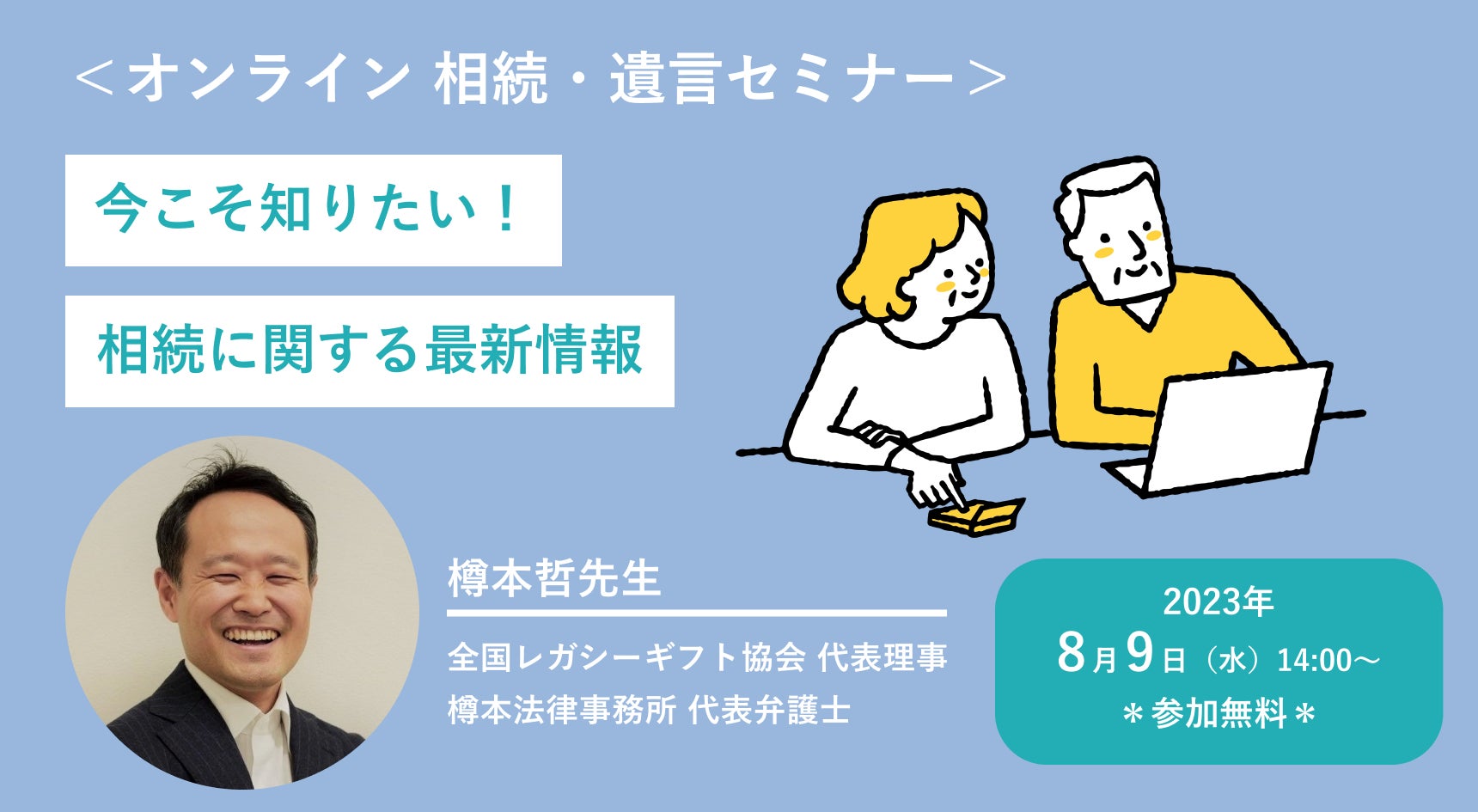 公益財団法人日本対がん協会は、2023年8月9日(水)相続・遺言セミナー「今こそ知りたい!相続に関する最新情報」をオンライン開催いたします。