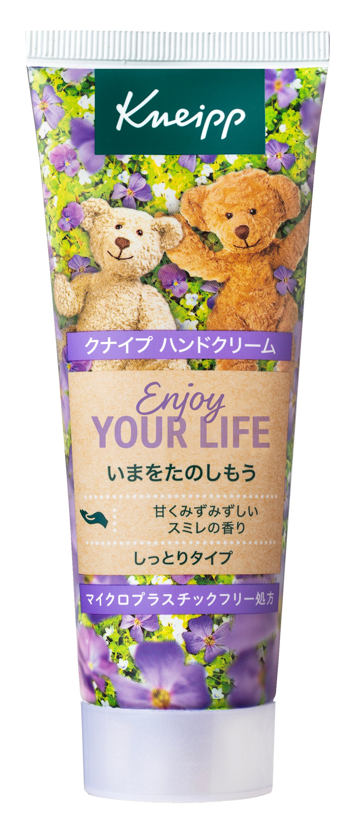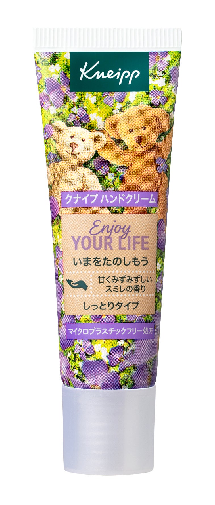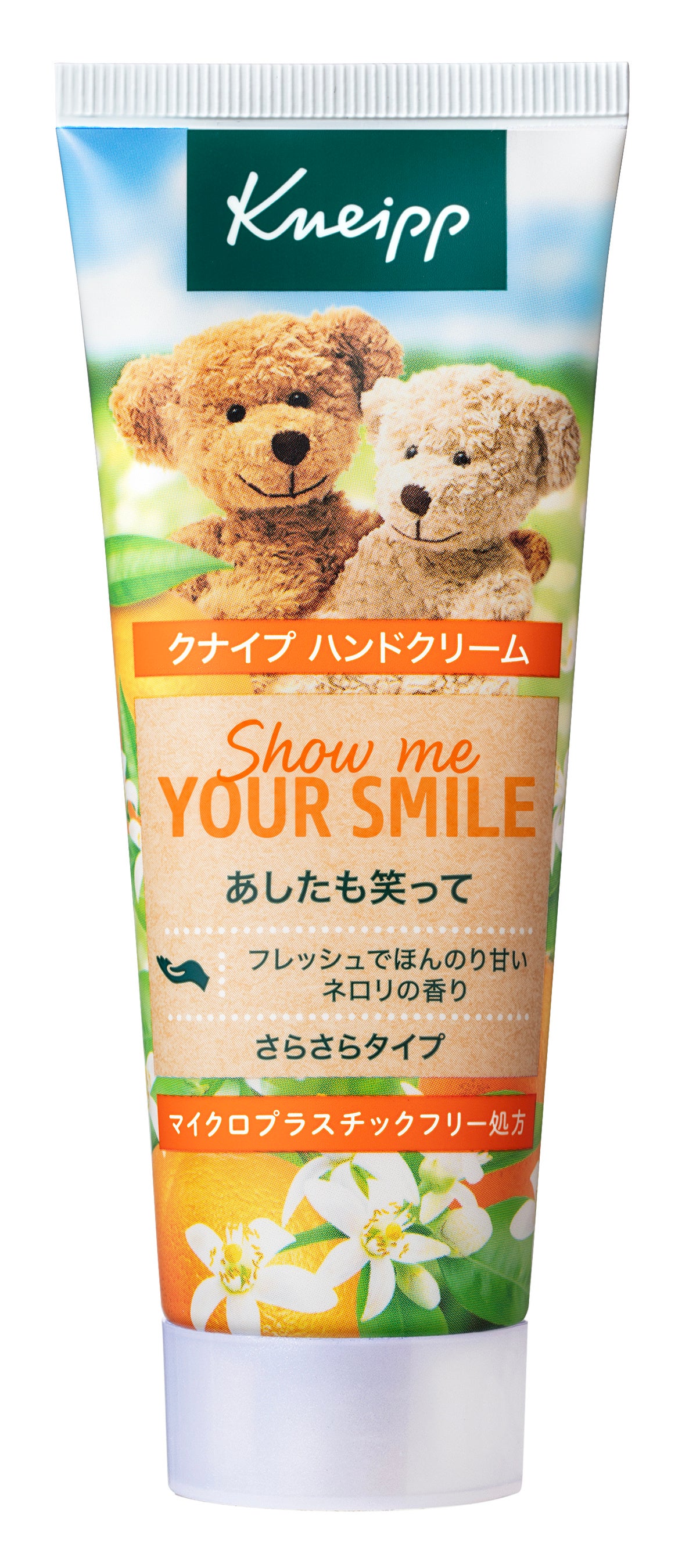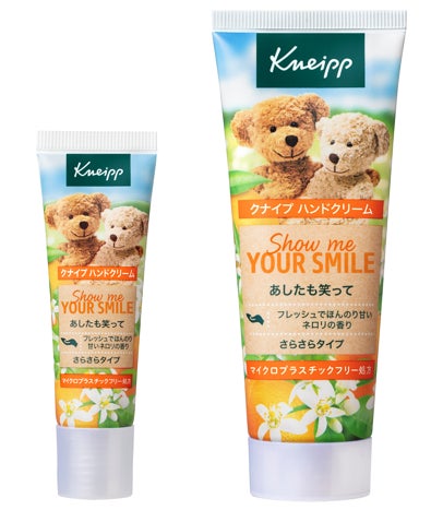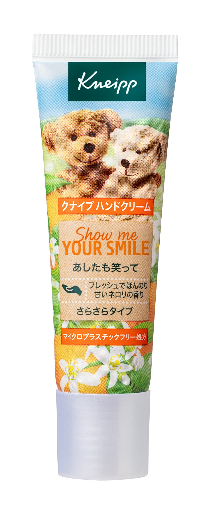 ハンドクリームのラインナップのなかでも、長く愛されている香りのネロリ。この度、新パッケージで登場します。スミレの香り同様、可愛らしいクマがとてもキャッチーで、「あしたも笑って」の前向きになれるメッセージ付き。香りが感じられる花々のデザインはクナイプならではの植物由来の豊かな香りを感じさせてくれます。