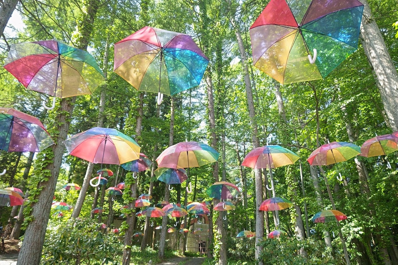 「レインボーアンブレラ」は空だけでなく手元にも!傘の無料貸し出しを行います。