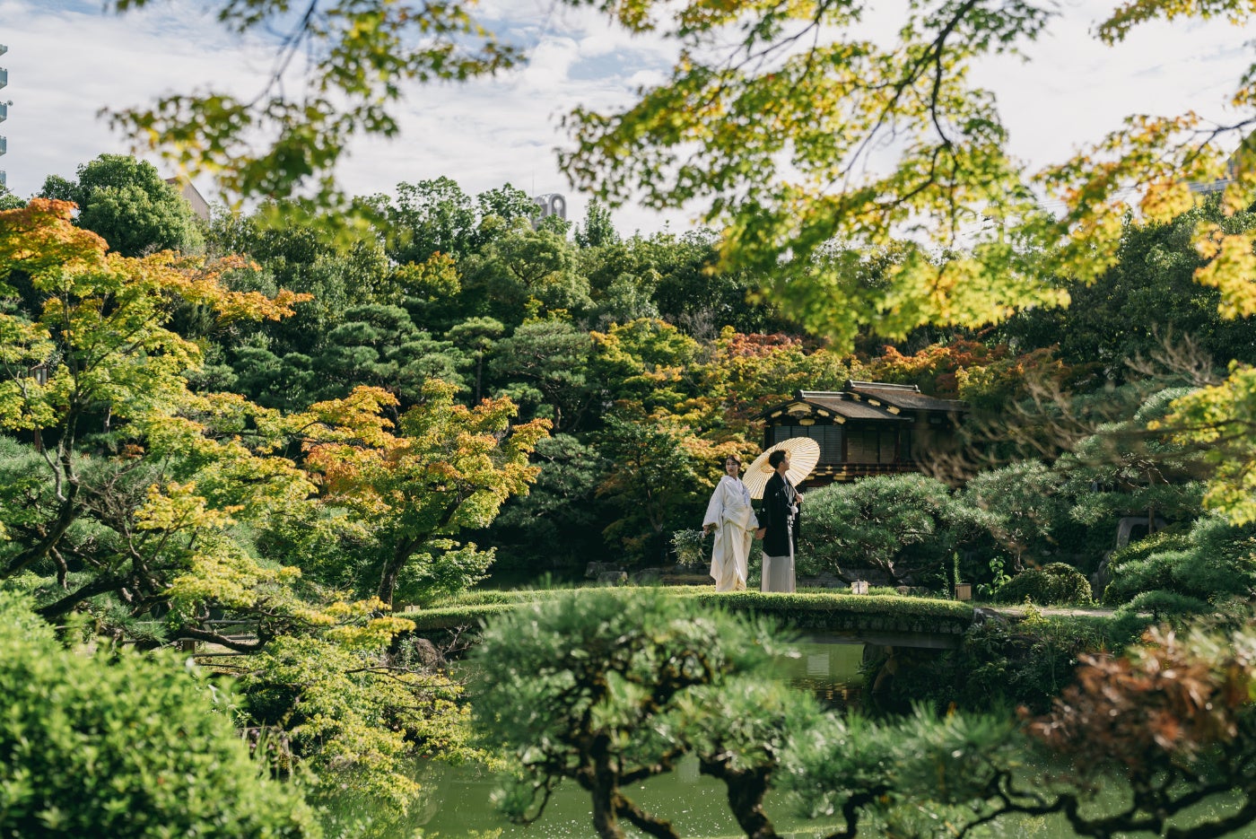 〈以下写真は、フォトグラファーTaiheiによるウェディングフォト例(上3点は相楽園にて)〉