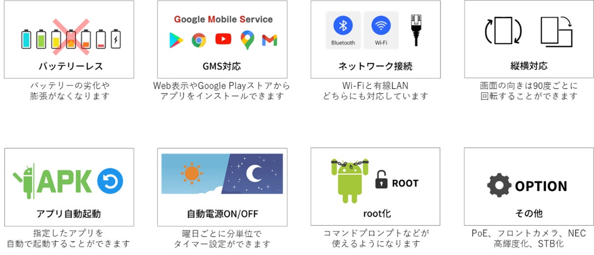 当社ではデジタルサイネージに必要な豊富なカスタマイズもラインナップいたしました。