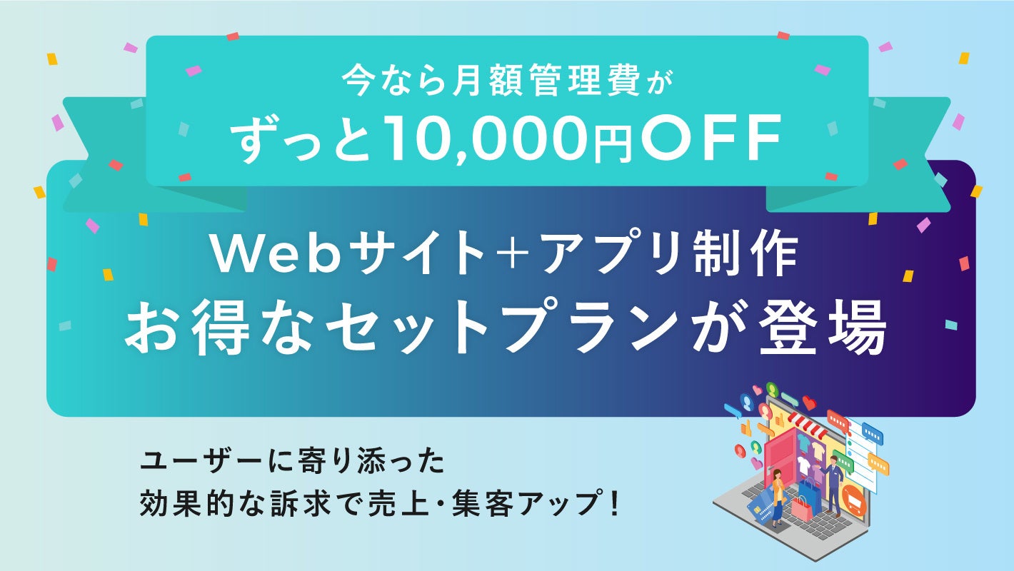 今ならずっと10,000円OFF!売上&集客アップに不可欠なWebサイト&アプリ制作がお得なセットプランで登場