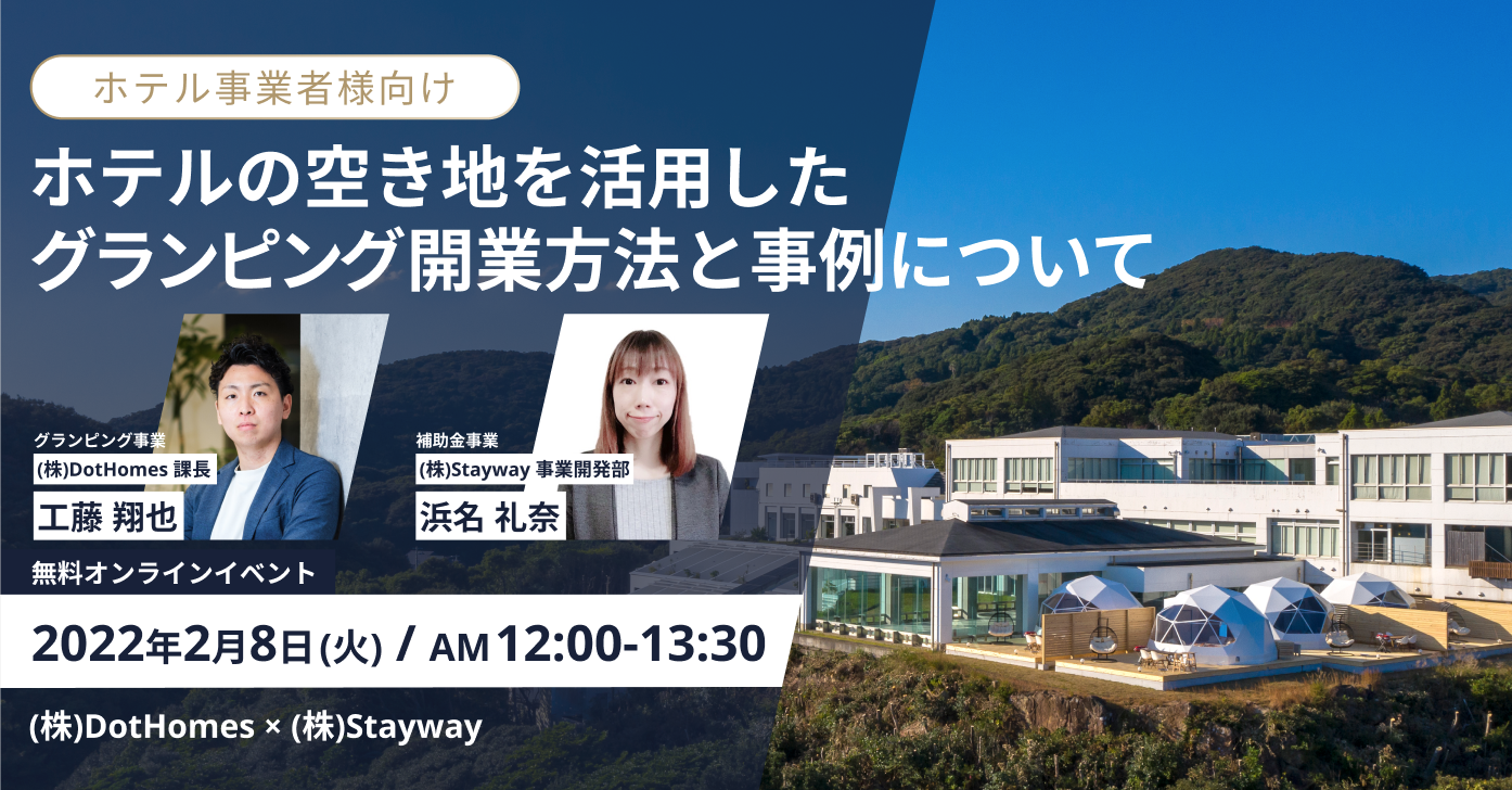 株式会社Staywayは、パーソルグループのDot Homesと連携し、グランピング事業の計画をお考えの事業者様に向け、無料のWebセミナーを開催いたします。