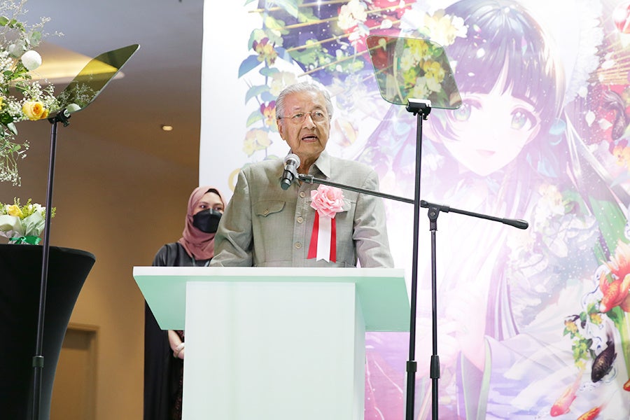オープニングセレモニーにご出席いただいたマハティール元⾸相と在マレーシア⽇本国⼤使の髙橋克彦⽒。