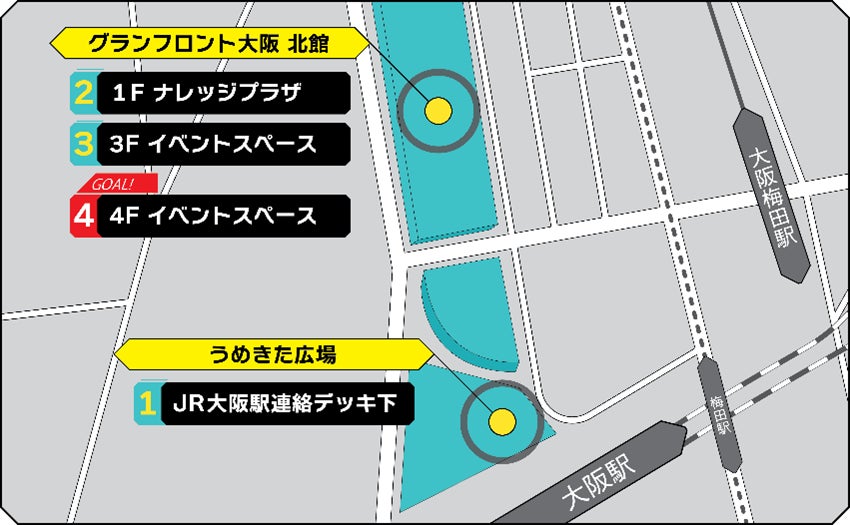 ・スタンプ台紙は各スタンプ設置場所および賞品交換場所・ナレッジプラザ2階(入場特典配布スペース)で配布しています。