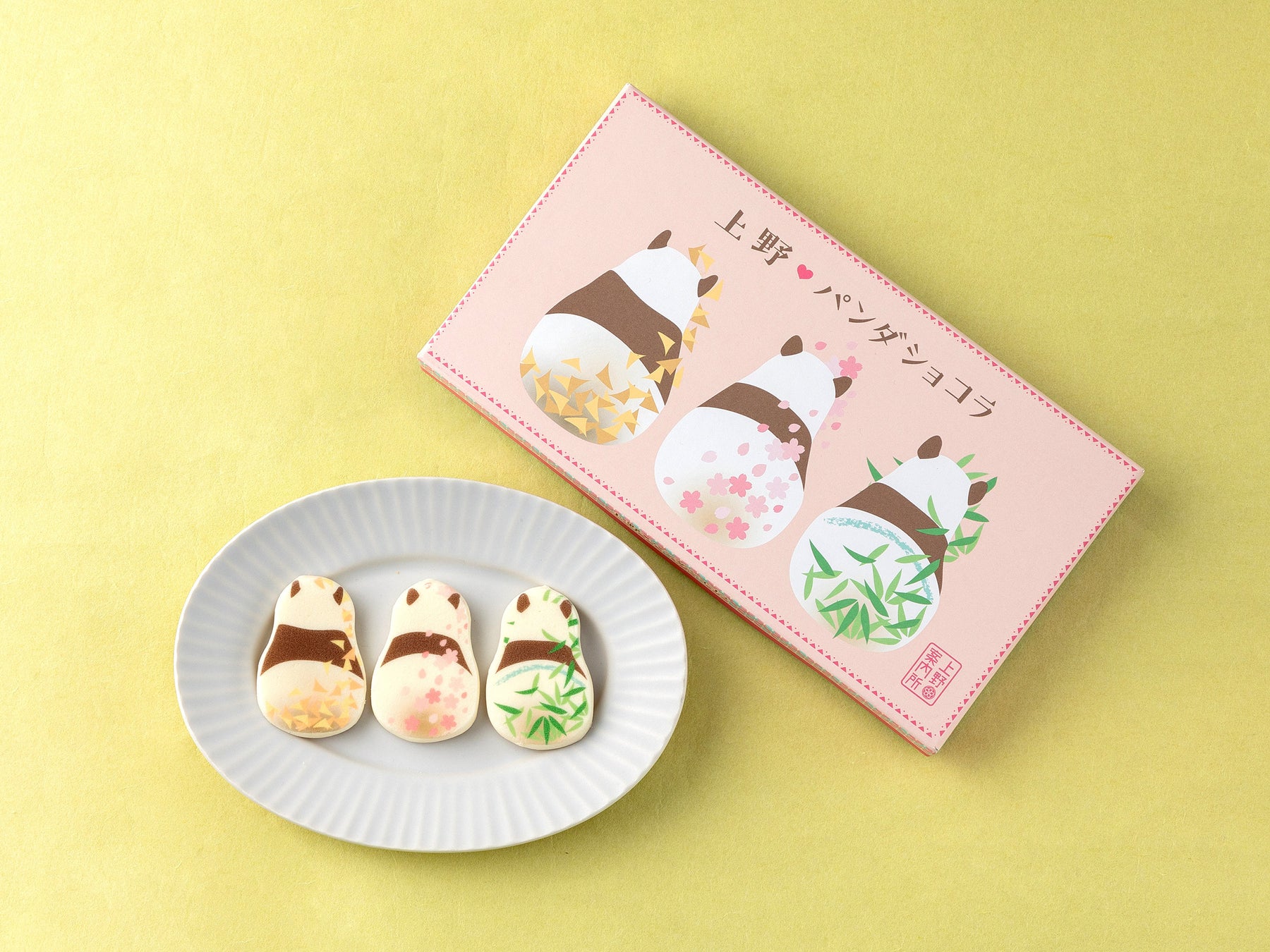 丸くて愛らしいパンダのうしろ姿が色鮮やかに描かれた、ショコラクッキーが登場! 生地にホワイトチョコレートが練りこまれた、ほろりと溶けるような新食感クッキーです。上野名物の桜や、大好物のタケノコと笹をあしらったパンダのうしろ姿は、何とも癒されます。個別包装されており食べやすく、パッケージもかわいいので、プレゼントやお土産にもオススメです。