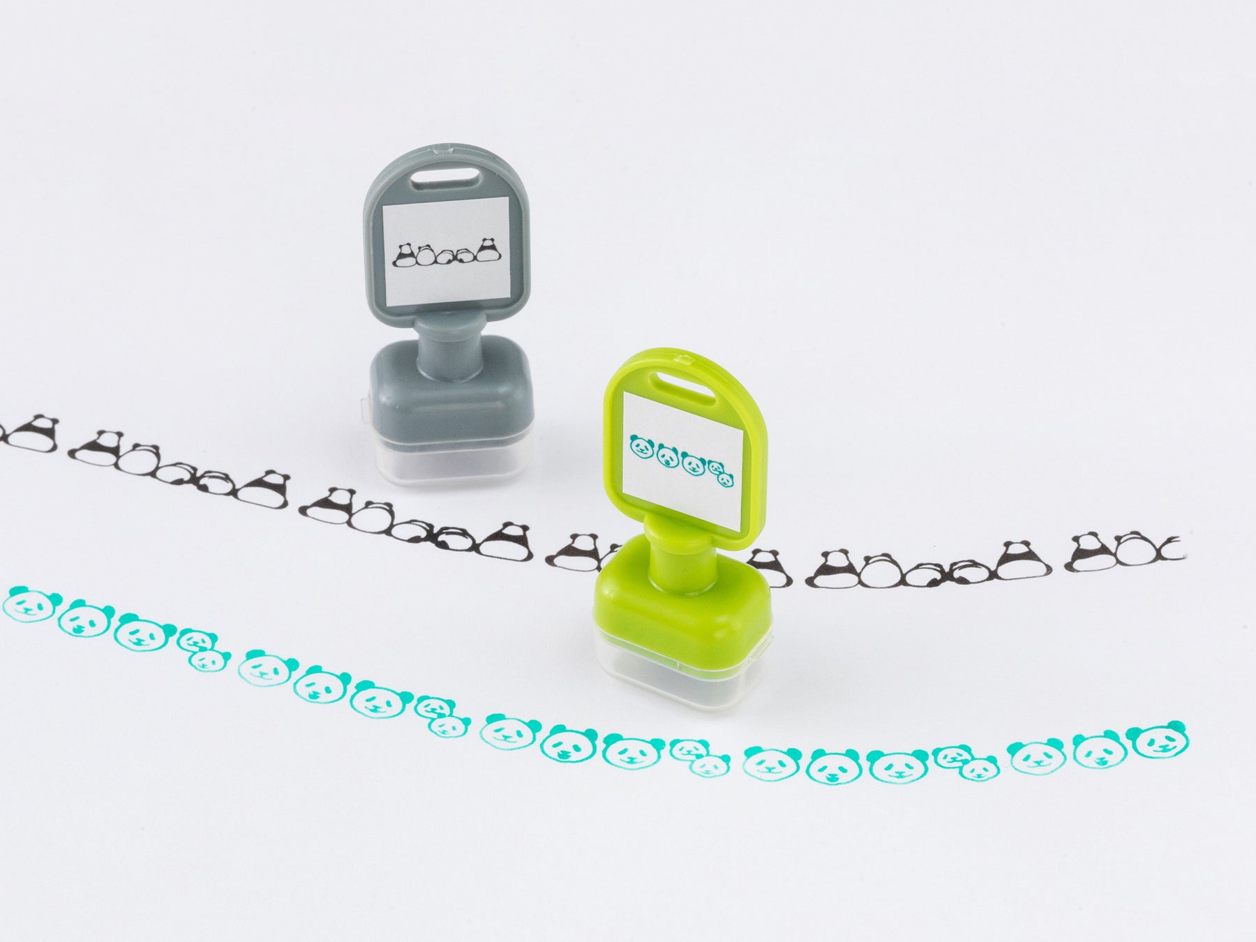 上野パンダファミリーが小さくてかわいらしいローラースタンプになりました。紙の上でころころっと転がすと、上野パンダファミリーモチーフの模様が表れます。にっこりスマイル顔と、仲良く並ぶ後ろ姿がキュートな2種1セットです。ダイアリーやお手紙のデコレーションに使うと、思わず笑顔になりそう♪